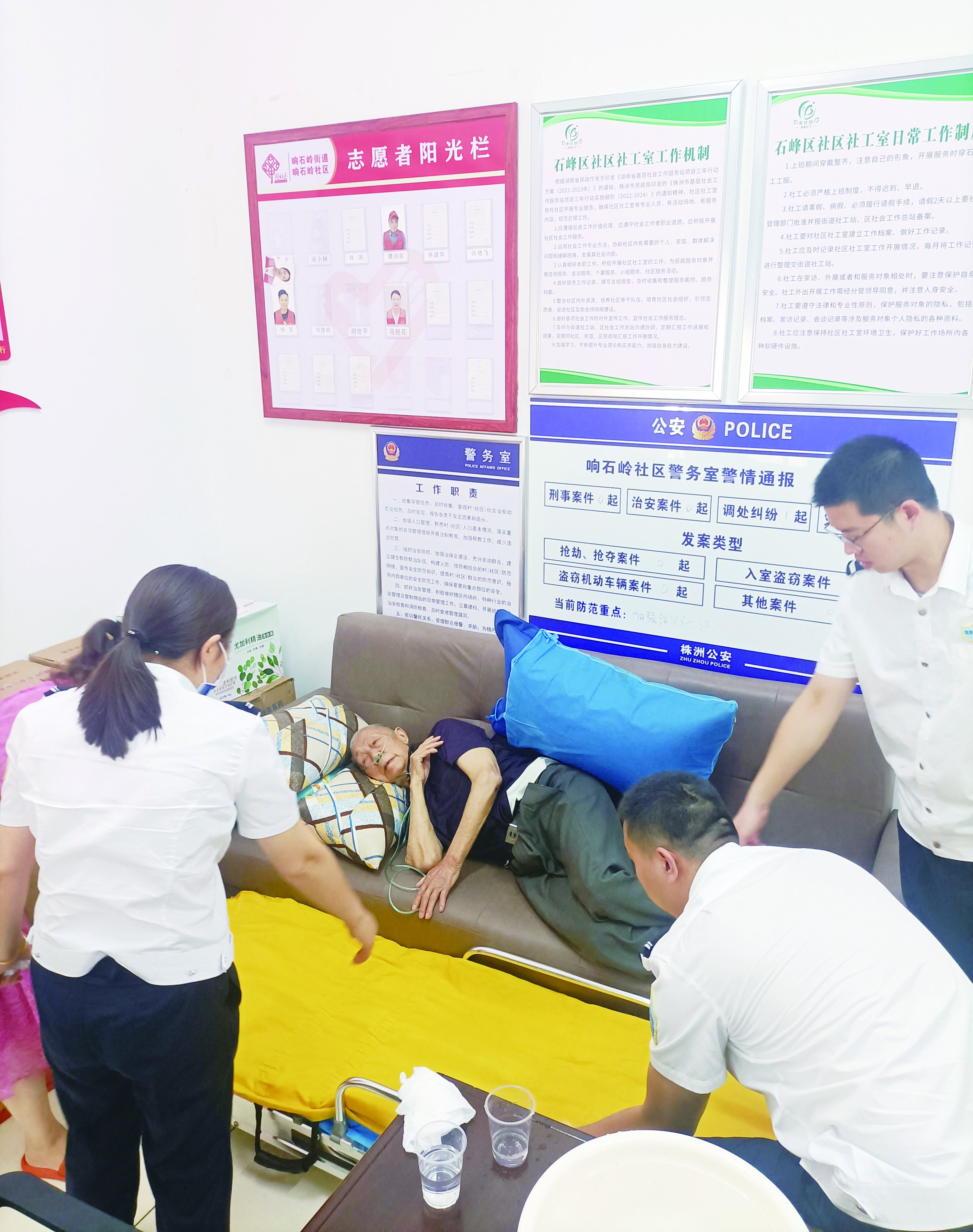 本报讯(株洲晚报融媒体记者/杨如 通讯员/刘佳妮) “你好,这位老人好像中暑了,走路摇摇晃晃的,后来倒在路边,你们快帮忙联系一下他的家人!”7月15日上午,一位热心人将老人送到了附近的社区。