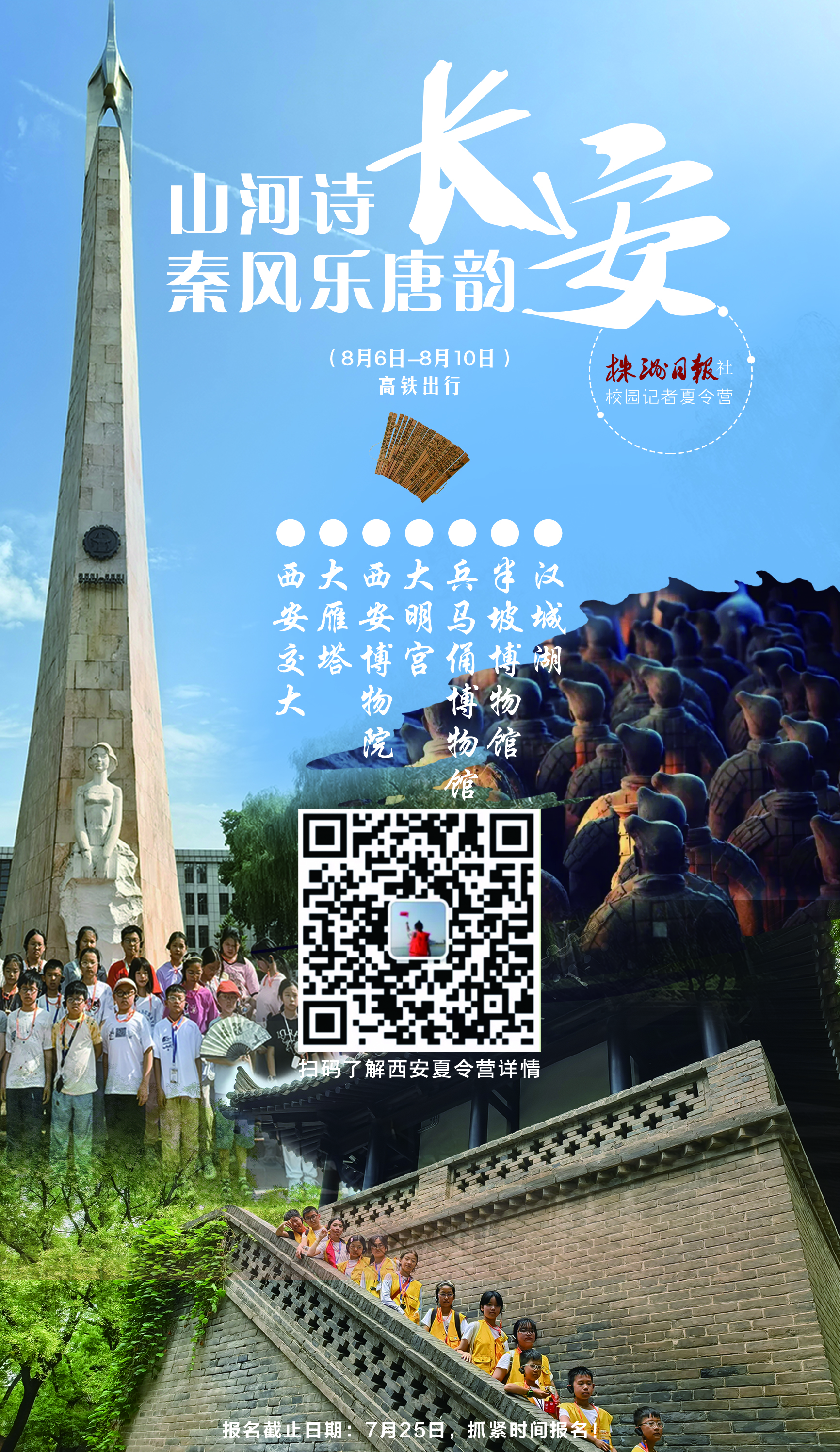 8月6日—10日,株洲日报社校园记者“山河诗长安·秦风乐唐韵”西安夏令营火热来袭。跟着老师的脚步,走进这个充满故事和魅力的城市吧!仅剩少量席位,7月25日截止报名。报名热线:魏老师 18507338618。