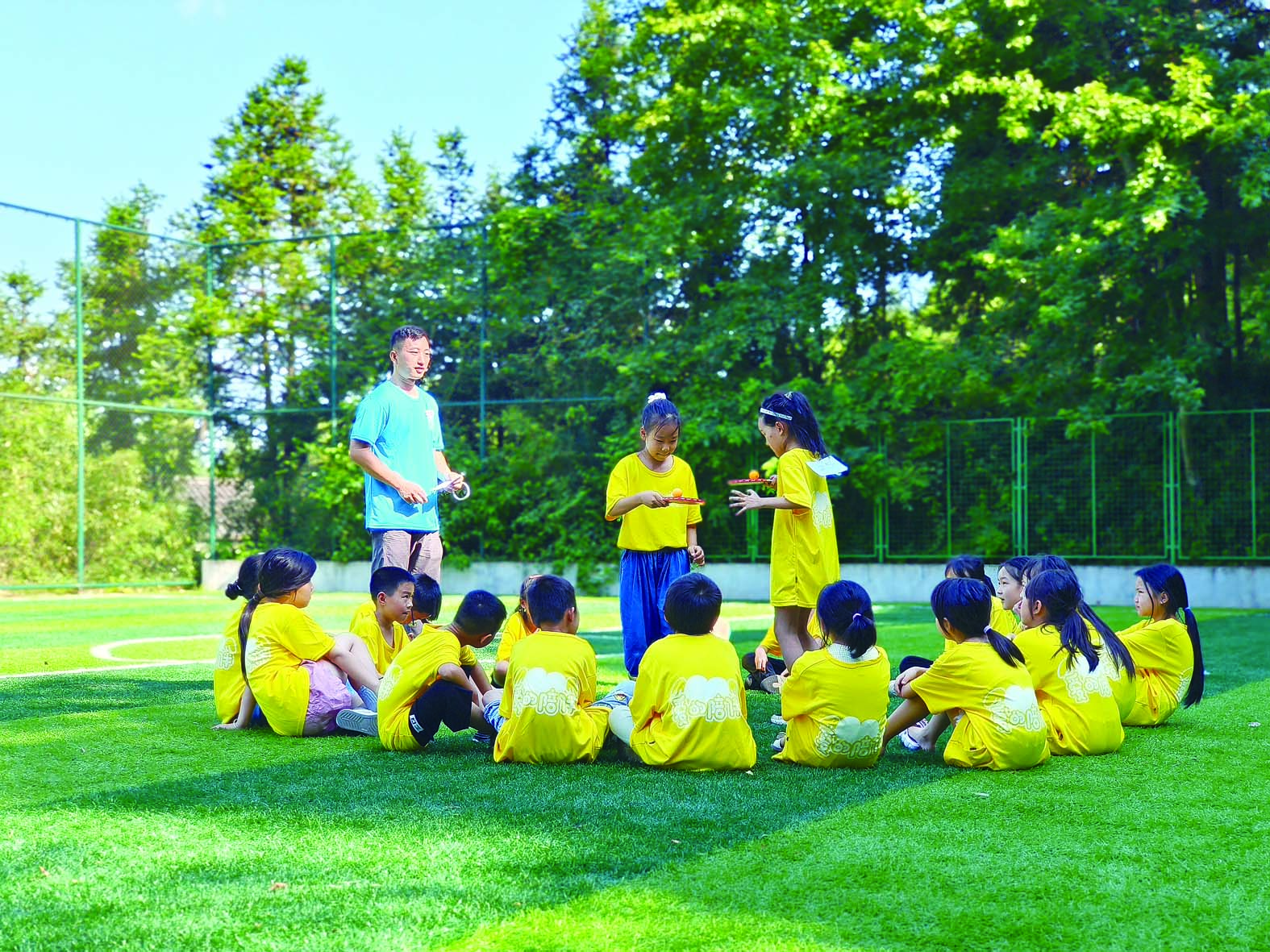 志愿者陪伴孩子们玩游戏。通讯员/彭程 摄