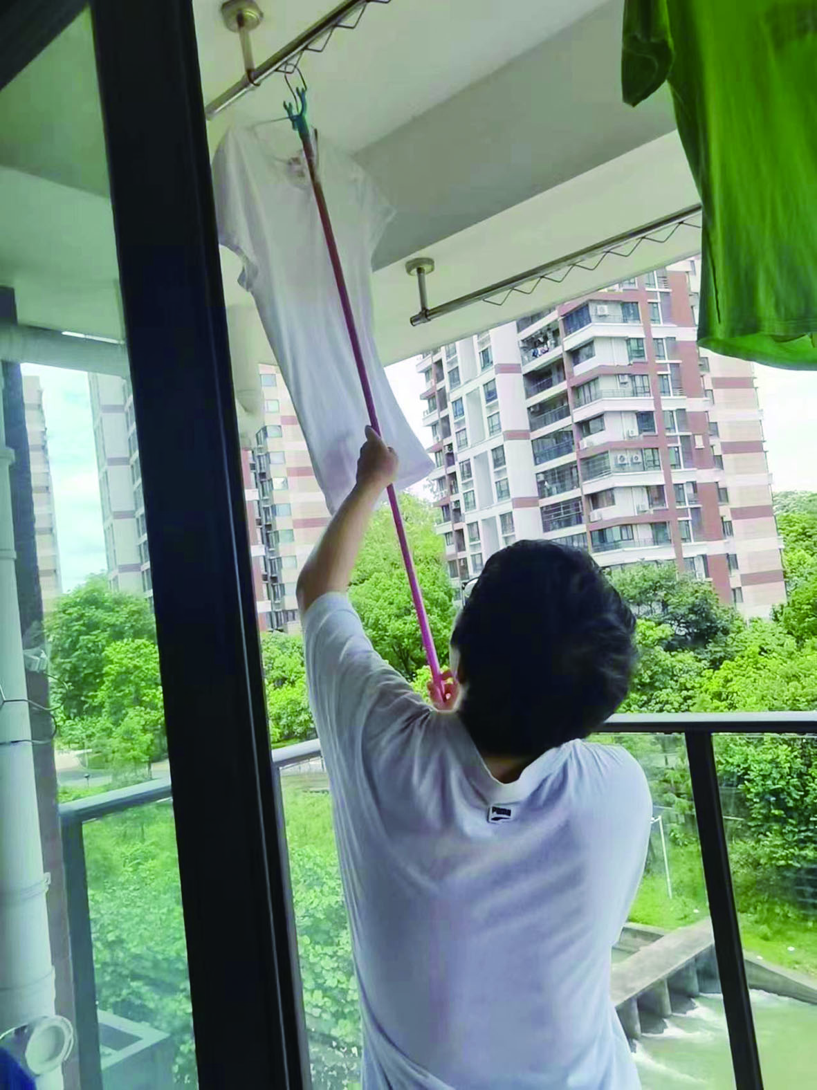 刘玉祥在叔叔家帮忙做家务。 记者/杨凌凌摄