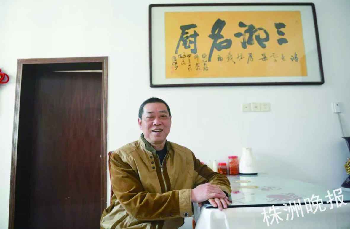 他家中挂着一块“三湘名厨”的牌匾。 图片为受访者提供