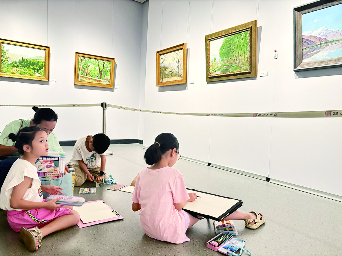 株洲日报社校园记者开展看画展、临摹画作的美育实践活动。 记者/颜家萍 摄