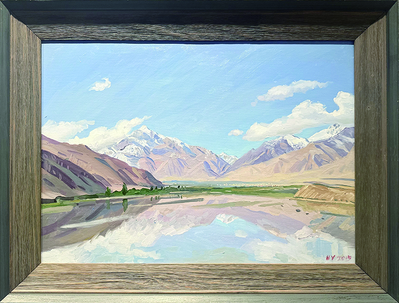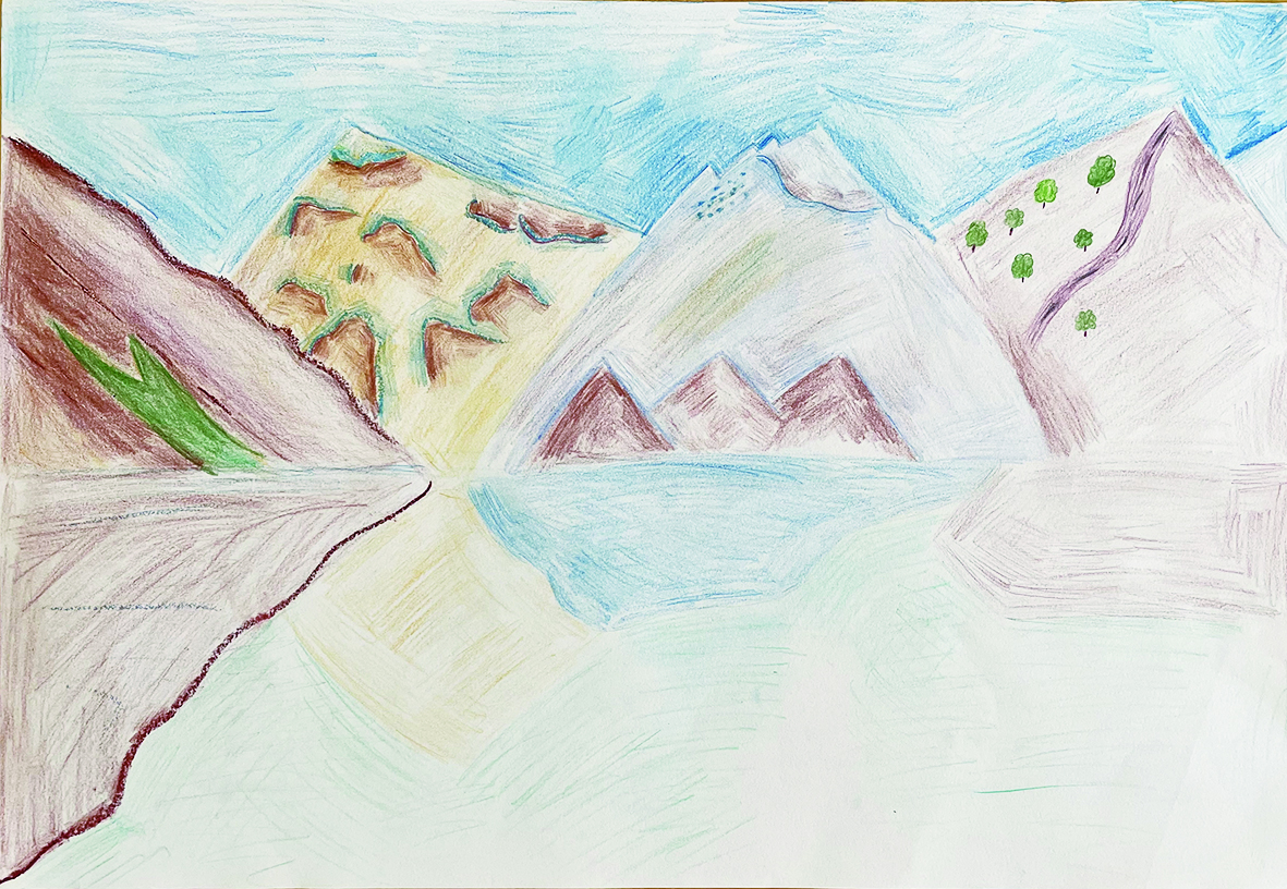 老师带着我们漫步在画海中,每幅画都像是个小故事,等着我去发现。终于,我挑中了一幅山水画,决定把它带回家。开始临摹时,我小心翼翼地模仿着贺羽老师的每一笔,那层层叠叠的山峦,水面上轻轻摇曳的倒影,还有那些细腻的波纹,都让我惊叹不已。原来,画画不只是涂涂画画,更是用心去感受大自然的美妙。