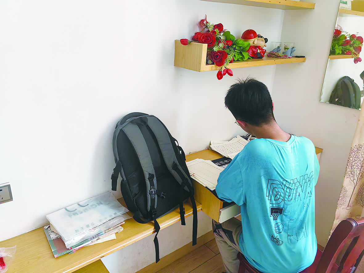 小毅暑假在家坚持学习。记者/陈洲平 摄