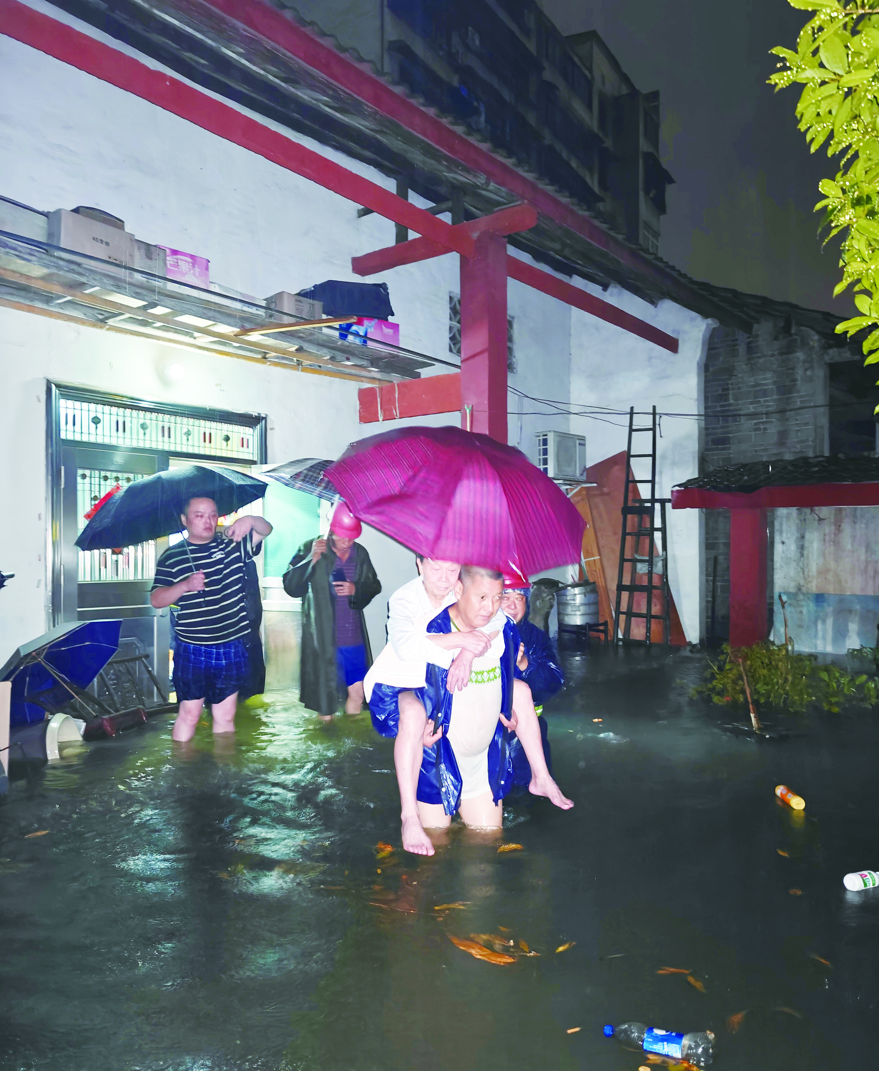 本报讯(株洲晚报融媒体记者/杨如 通讯员/龙佳佳) 7月27日晚上10时多,石峰区响石岭街道白石港社区内的万泥塘内涝点,散户居民易翠兰家里积水严重,水已涨至屋门口。易翠兰今年87岁,是瘫痪老人,行动不便。