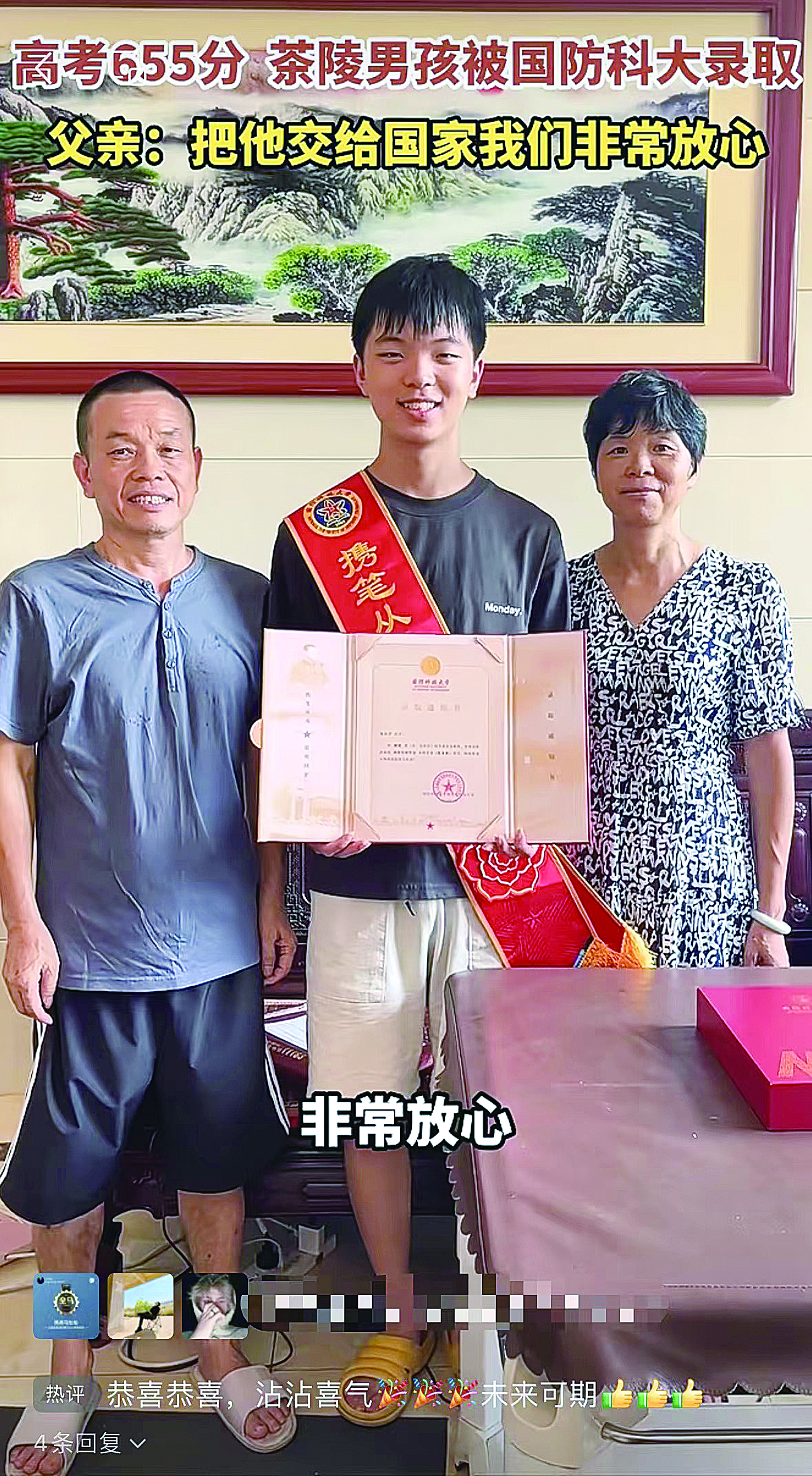 高考655分!茶陵男孩陈泓宇被国防科大录取。父亲:把他交给国家我们非常放心。