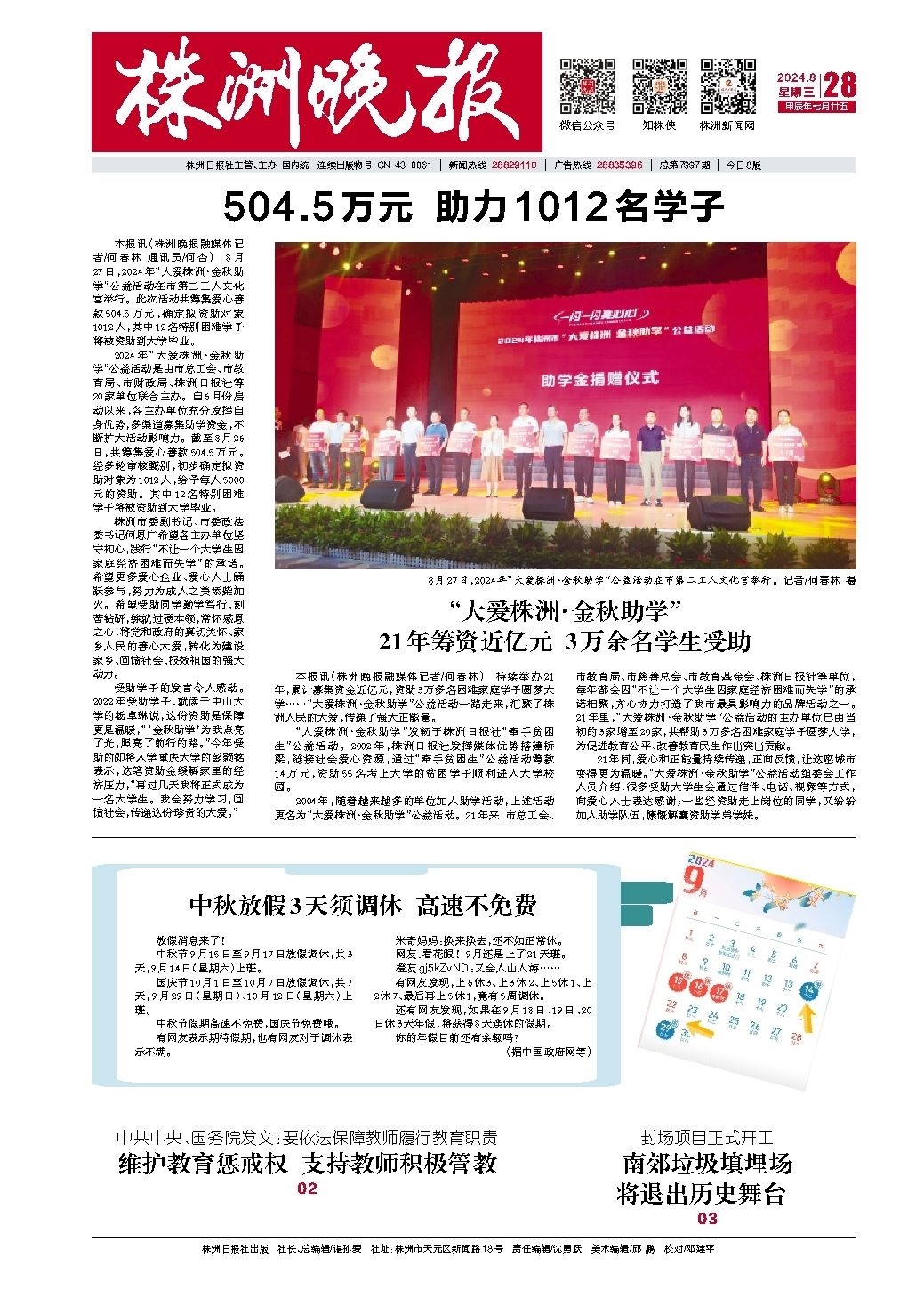 “大爱株洲·金秋助学” 21年筹资近亿元 3万余名学生受助