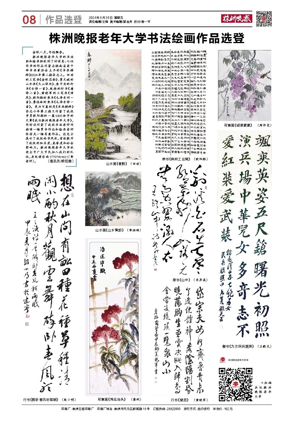 株洲晚报老年大学书法绘画作品选登