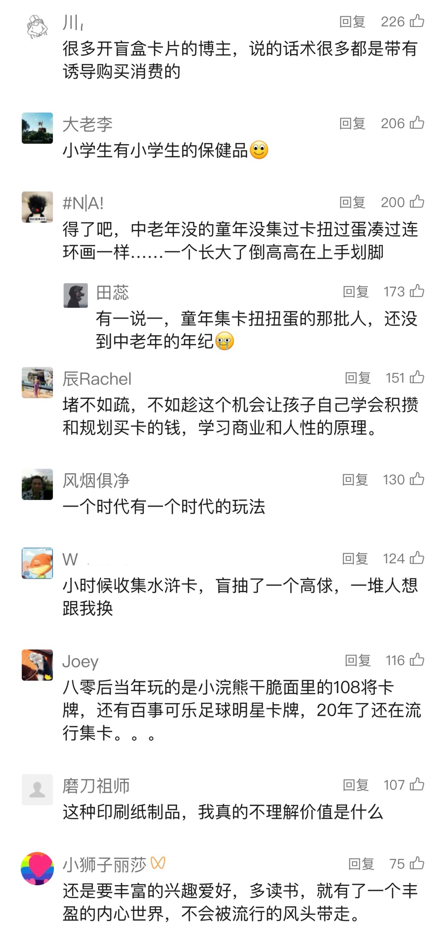 “一代人有一代人的‘破烂’。”80后的曾先生称,小时候攒过小浣熊卡,撕过烟盖上三角形的“烟标”,现在的孩子能有如此“爱好”,其实也不是多新鲜的事儿。