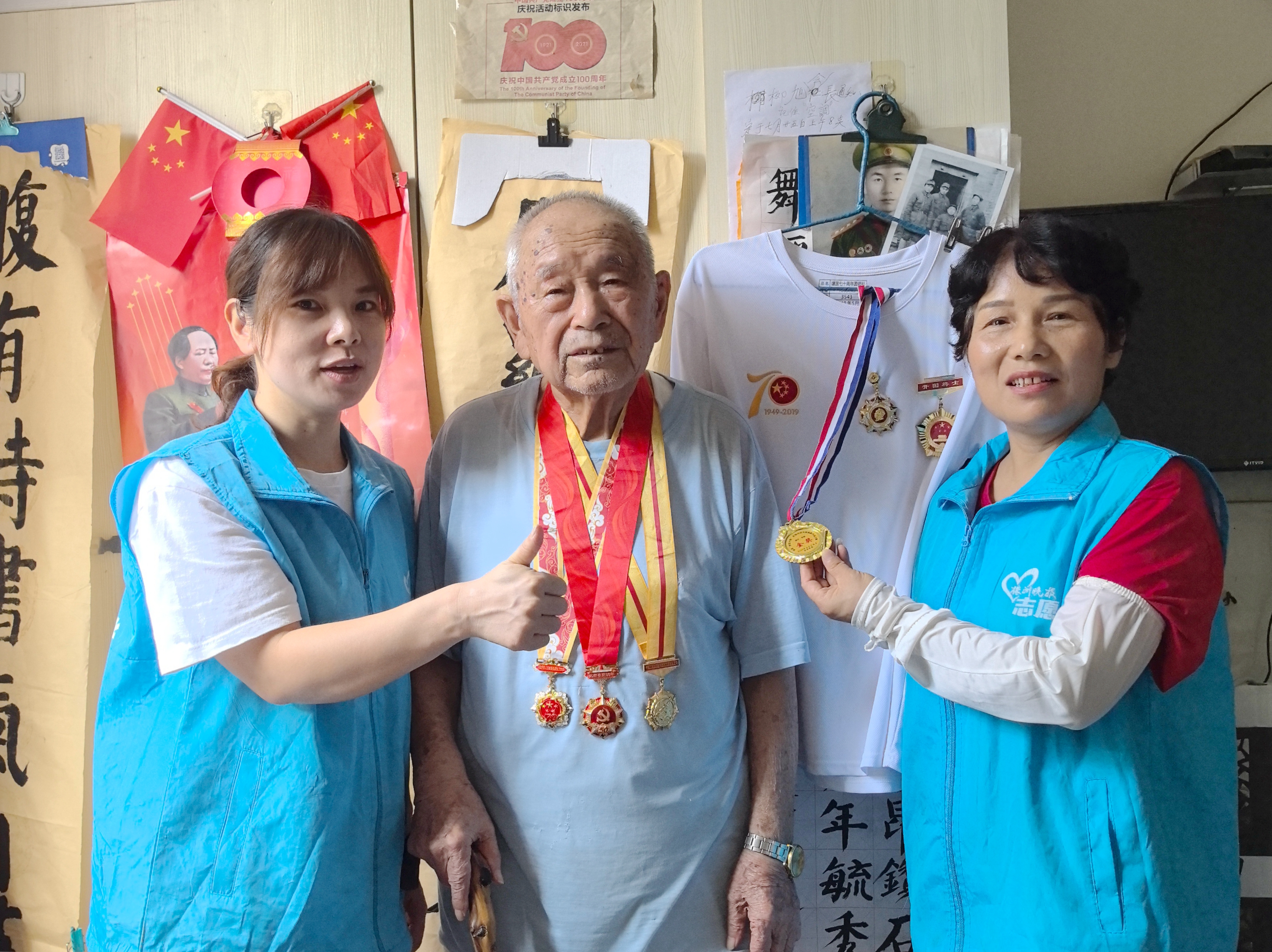 8月1日建军节,株洲晚报志愿者联合会“乐得”关爱为国作出特殊贡献老人项目志愿者们前往28名抗战老兵及烈士亲属家中看望,为他们送上真挚的节日祝福以及米、油、牛奶、水果等爱心慰问品。