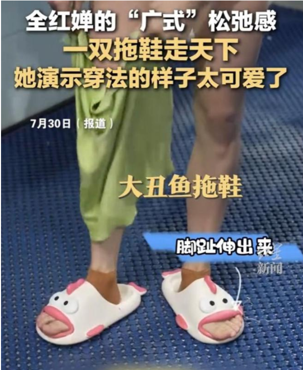 7月31日,广东运动员全红婵和搭档陈芋汐在巴黎奥运会上再现“水花消失术”,为中国队夺得了跳水女子双人10米台金牌。赛后,全红婵脚上那双“丑鱼拖鞋”冲上了热搜,成为了网友们关注的另一焦点。8月3日,记者检索发现,“全红婵同款拖鞋”在淘宝热搜的热度有686.8万,相关商品198件,一周内相关话题热度上升113%。有网友笑称:“全红婵把广式松弛感带进奥运会。”“啥也别说了,上链接吧。”