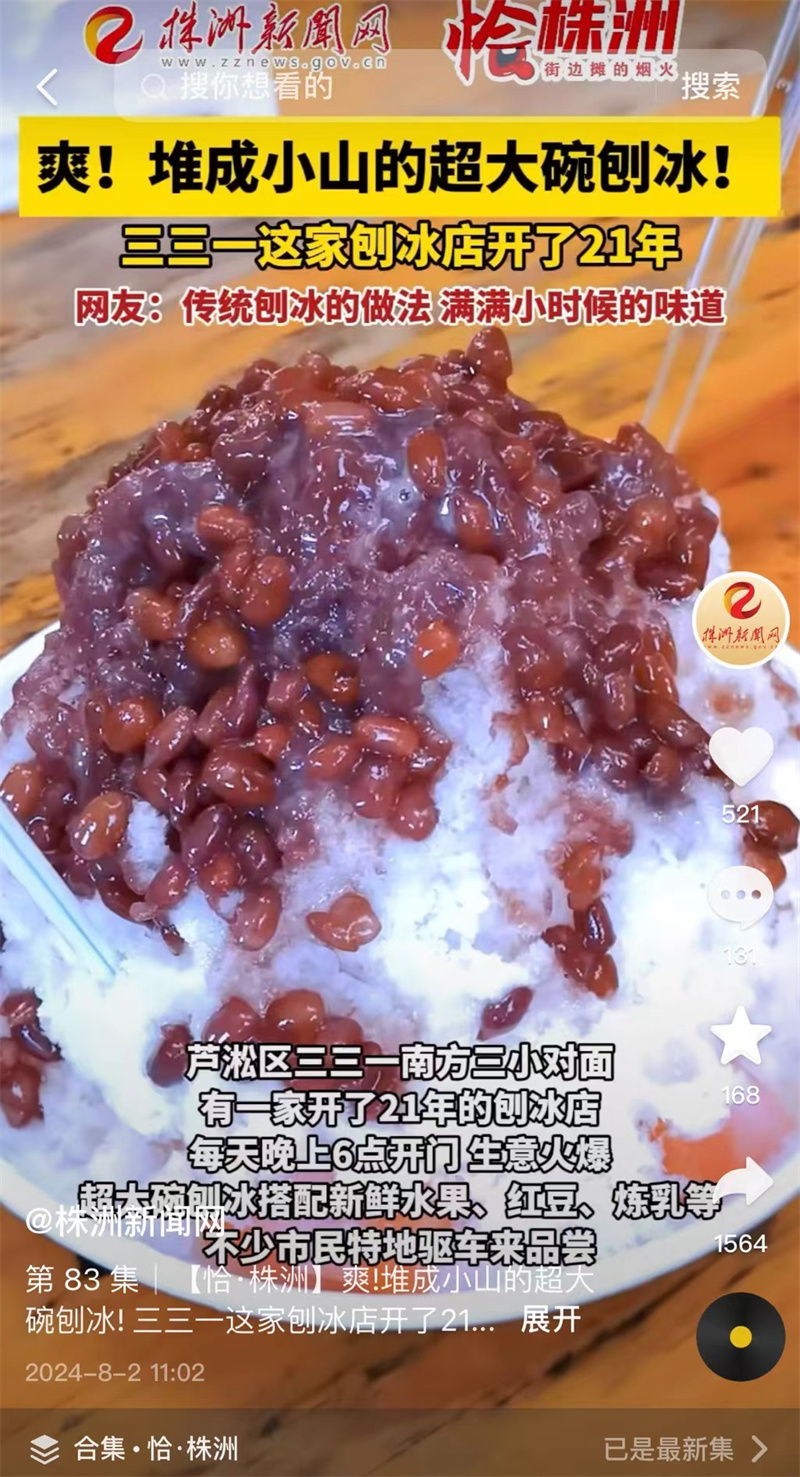 芦淞区三三一南方三小对面有一家开了21年的刨冰店,每晚6时营业,生意火爆,超大碗刨冰搭配水果、红豆、炼乳等。网友:传统刨冰的做法,满满小时候的味道。