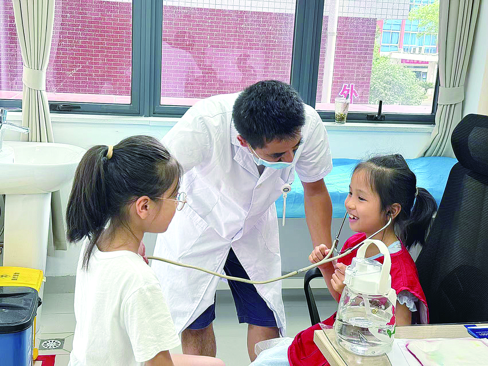 校园记者体验“小医生”。记者/魏朋 摄