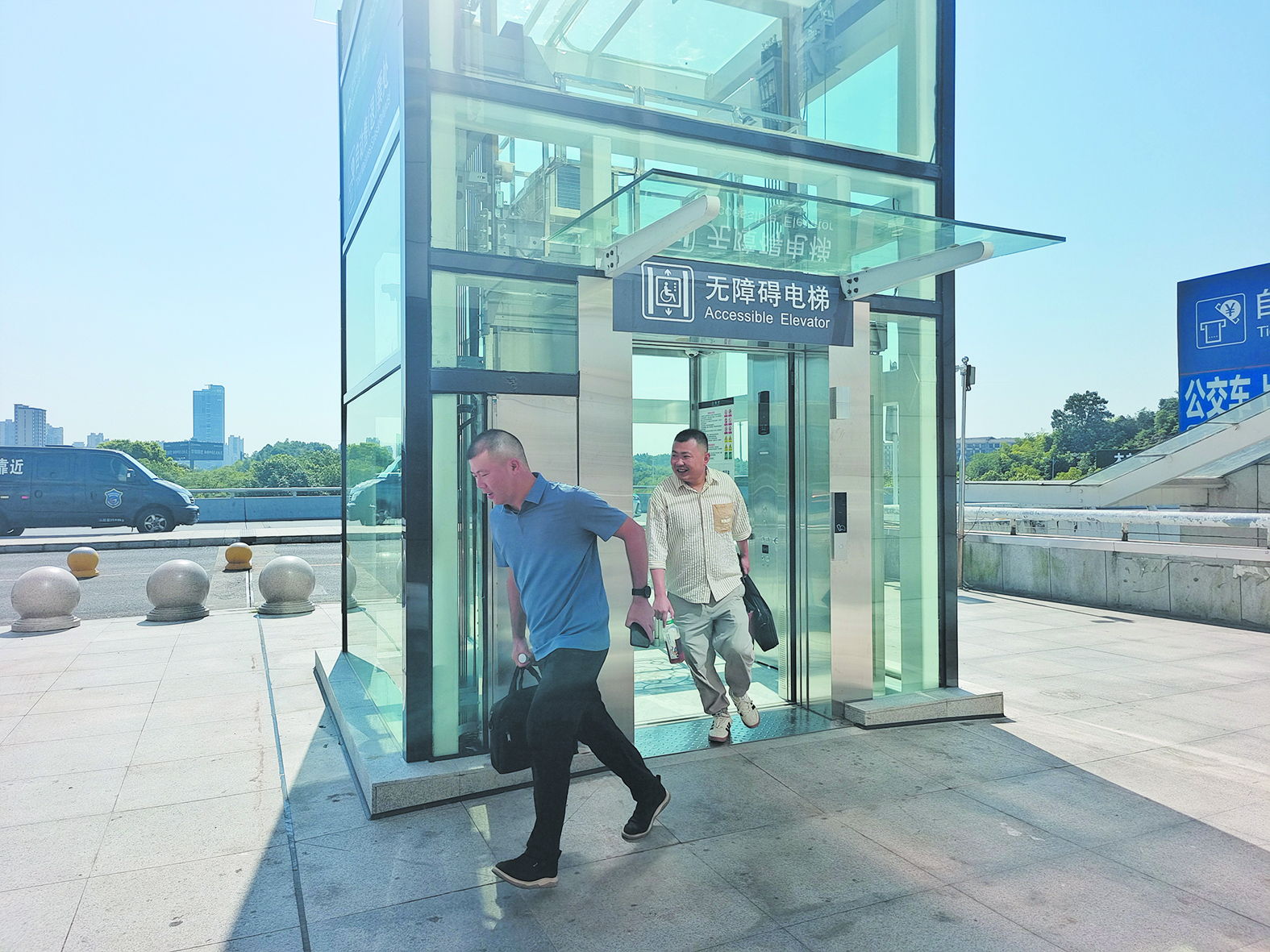 通过垂直电梯,旅客不用爬楼梯了。 记者/廖明 摄