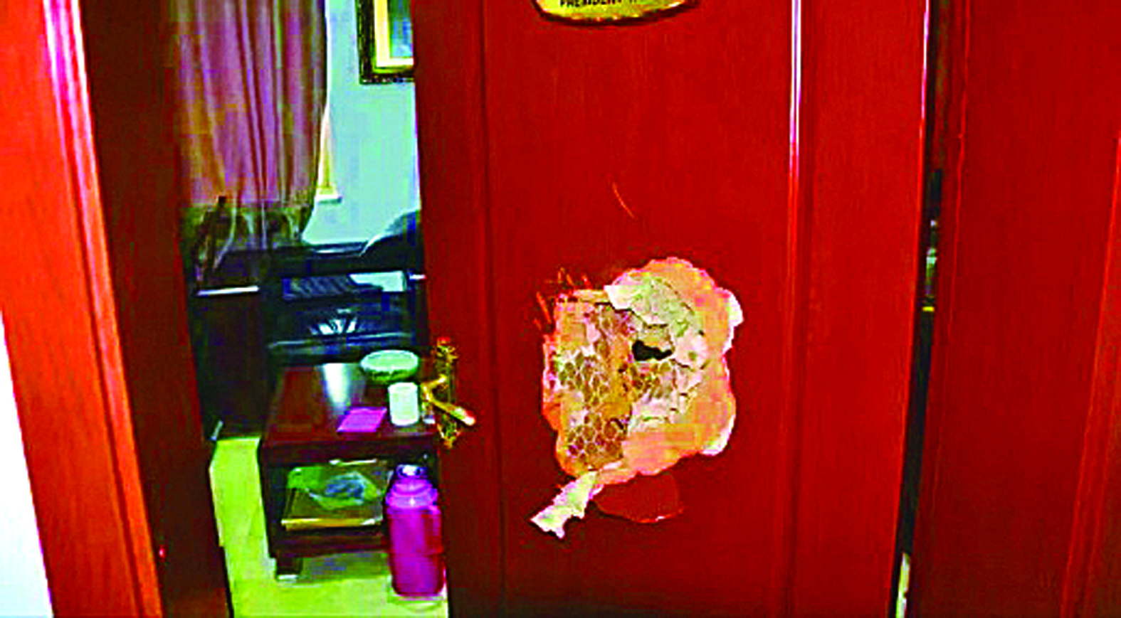 农家乐的房门被砸开一个洞。图据董家段公安微信公号