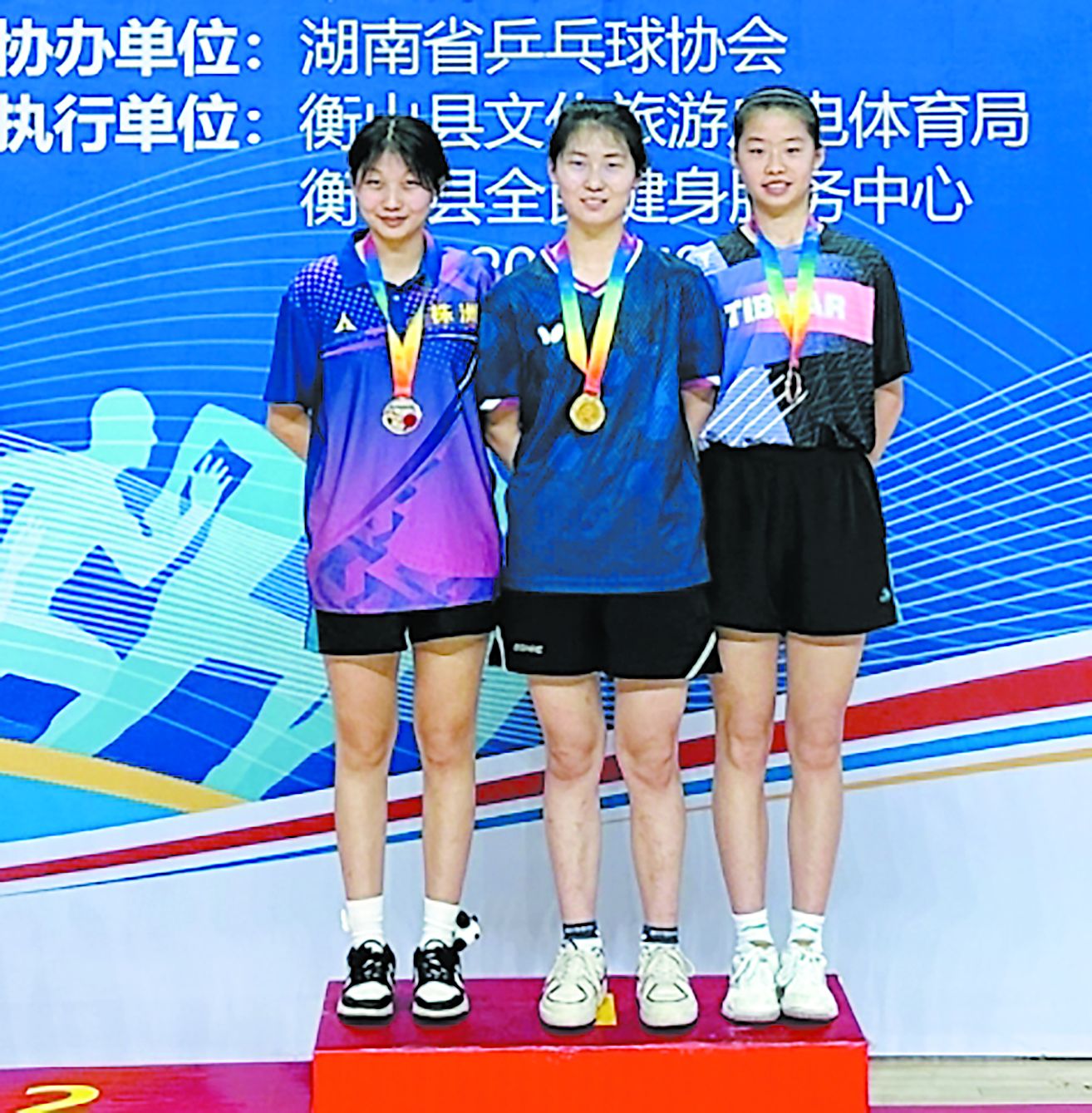 本报讯(株洲晚报融媒体记者/温琳) 8月12日下午,在衡山县体育馆,15岁株洲乒乓女孩郑雯予拿下了湖南省青少年乒乓球锦标赛U15女单冠军,算上之前获得的女团和女双金牌,在省赛上包揽三金。