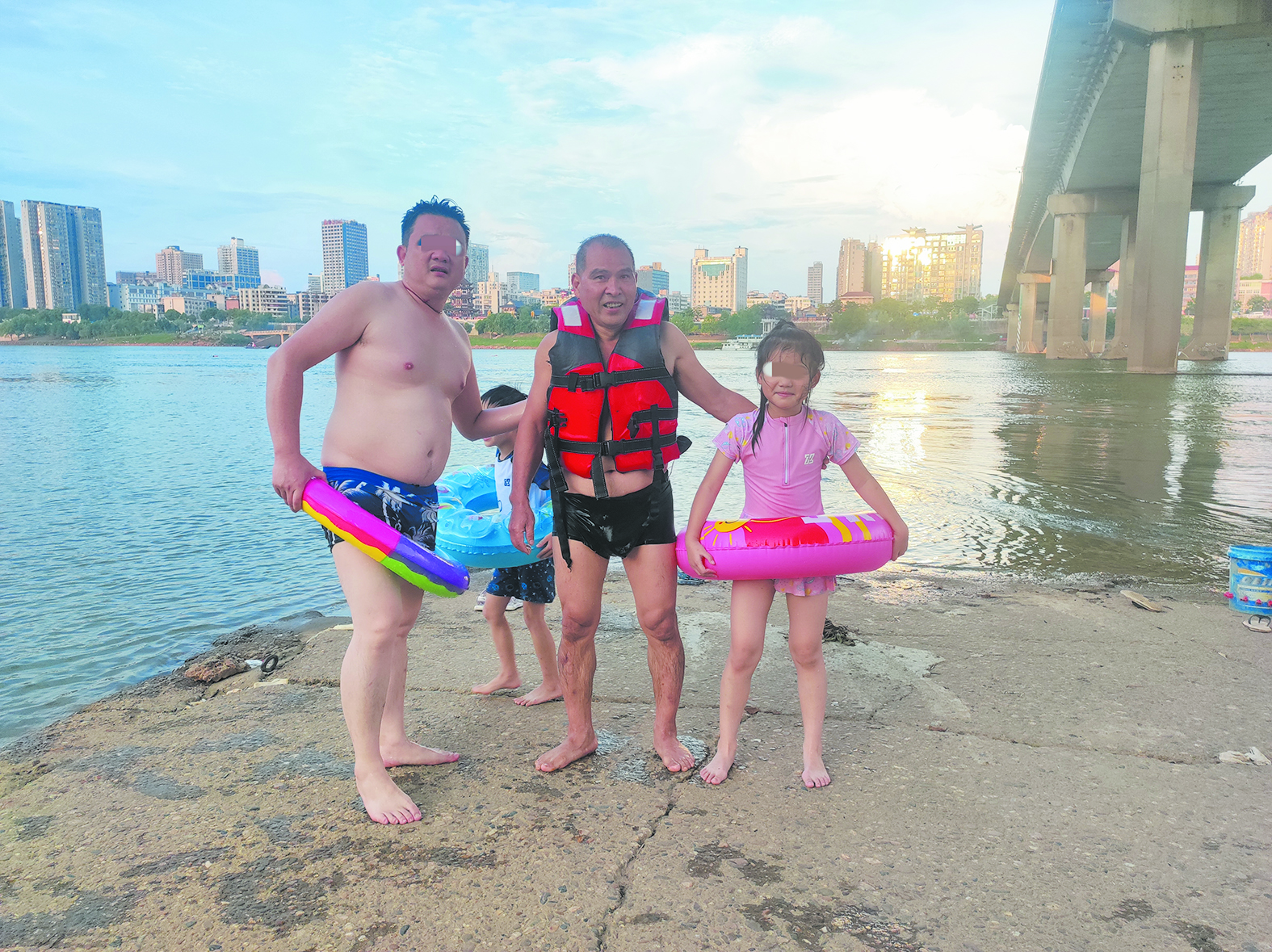 当天下午4点,胡先生带着一儿一女在天元大桥西头的老码头处消暑,因疏于照看,女儿不小心被急流冲至下游。一旁的胡先生见状,赶紧跳入水中营救女儿。“当时,我俩都有泳圈,所以我认为可以轻松自救,没想到推着女儿逆流游了几米就体力不支了。”胡先生回忆。