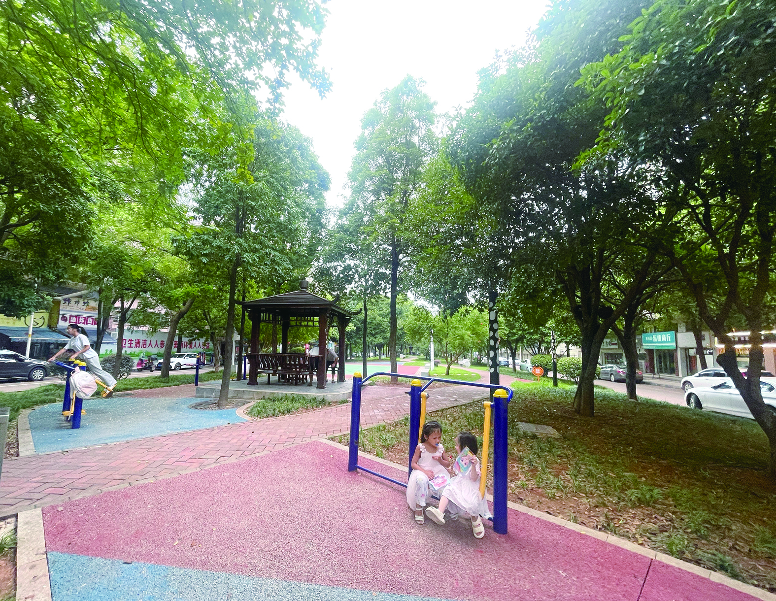 天元区和平路一处微公园,市民在休闲。 记者/伍靖雯 摄