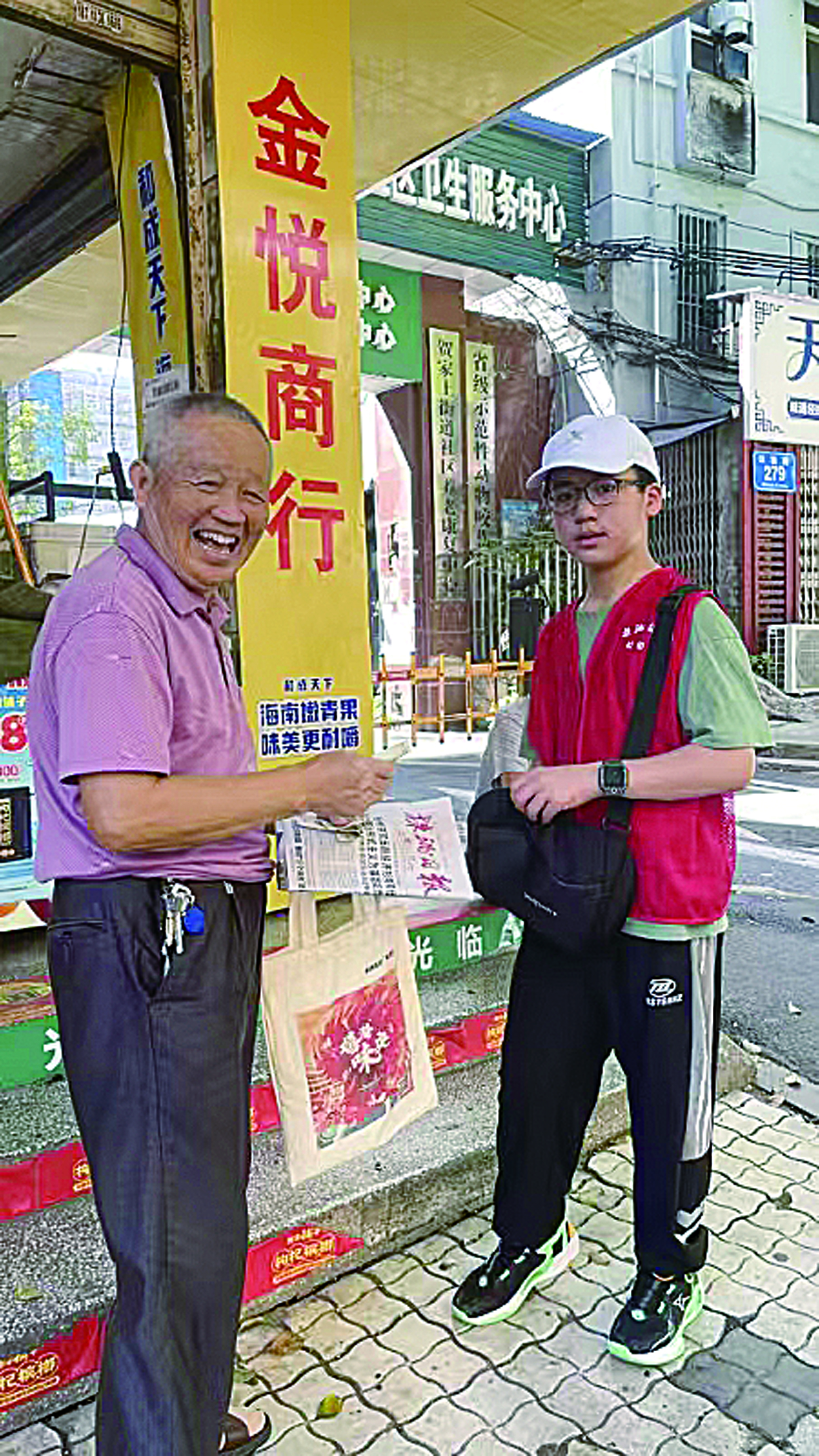 今年的活动,更在传承中创新,增添了一抹亮丽的色彩。校园记者俱乐部负责人颜家萍介绍,小报童们不仅积极宣传知株侠金秋助学活动,还将部分所得款项转化为实际行动,为户外工作的环卫工人和交警送去防暑降温物品。