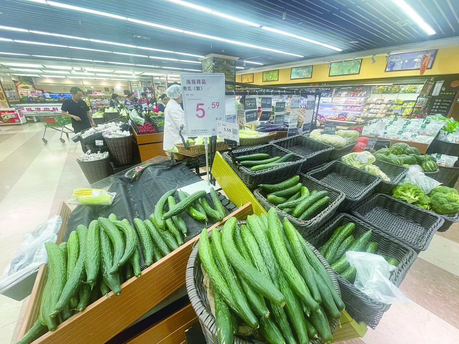 本地一家商超内,黄瓜零售价折合每公斤11.18元。 记者/伍靖雯 摄