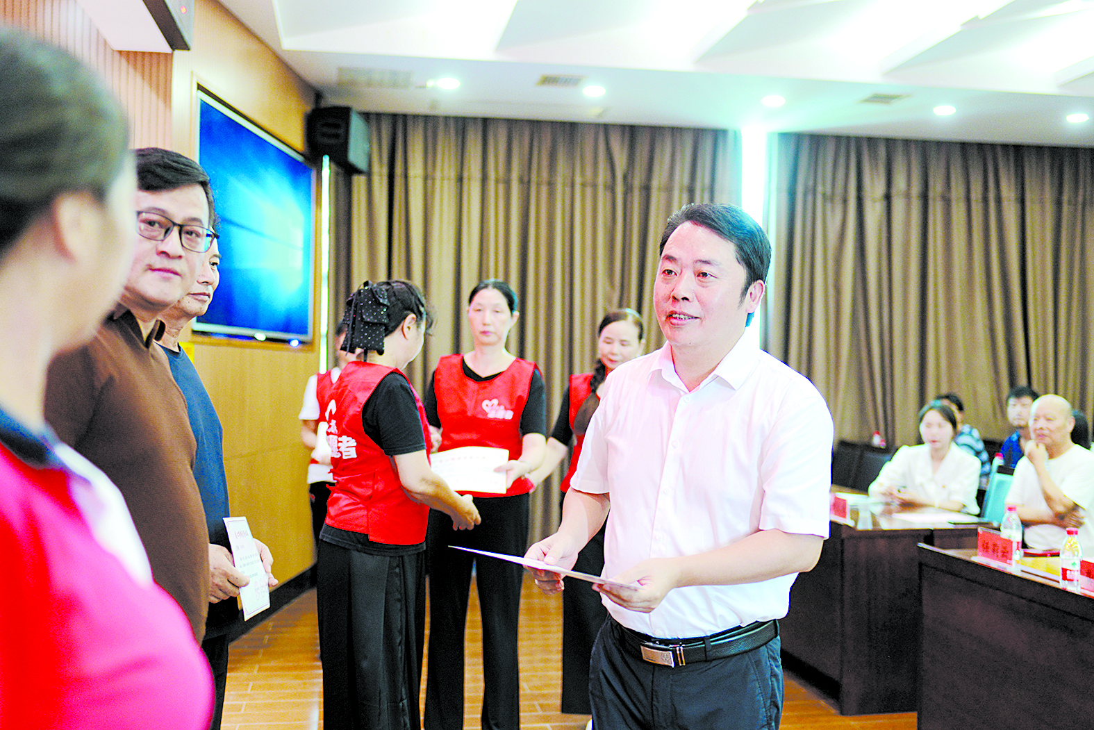 株洲日报社党组成员、副社长、副总编辑叶新福为爱心人士代表颁发荣誉证书。 记者/戴凛 摄