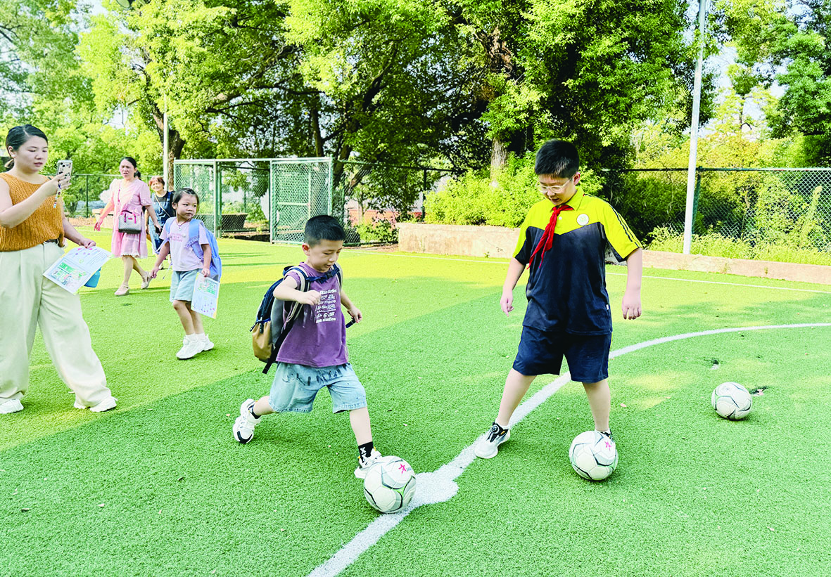 株洲六〇一中英文小学在操场、篮球场、种植园等多处精心设置了打卡集赞站点。 记者/戴凛 通讯员/罗芬 摄