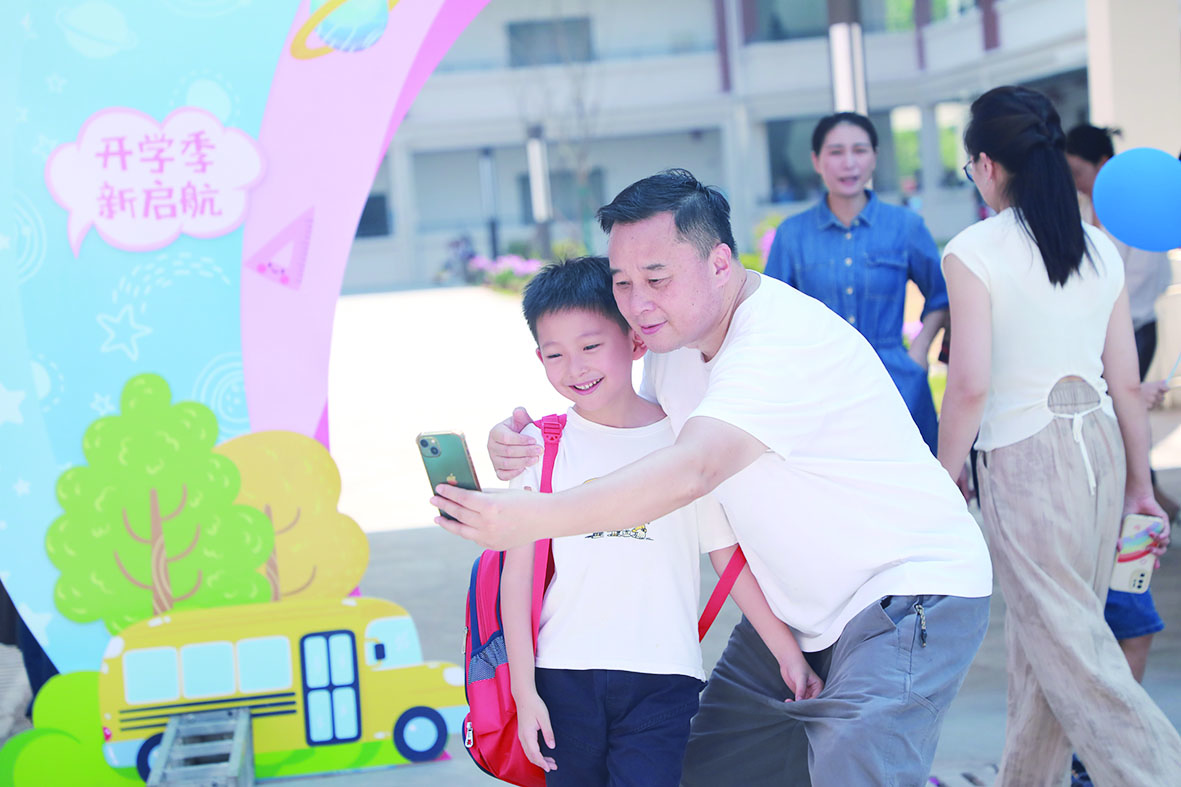 市二中附小多个校区同步开学,怀揣着对知识的渴求和学习的向往,开启他们美好的新学期。校园内,家长与孩子合影留念,记录这个美好时刻。 株洲晚报融媒体记者/孙晓静 通讯员/凌航 摄