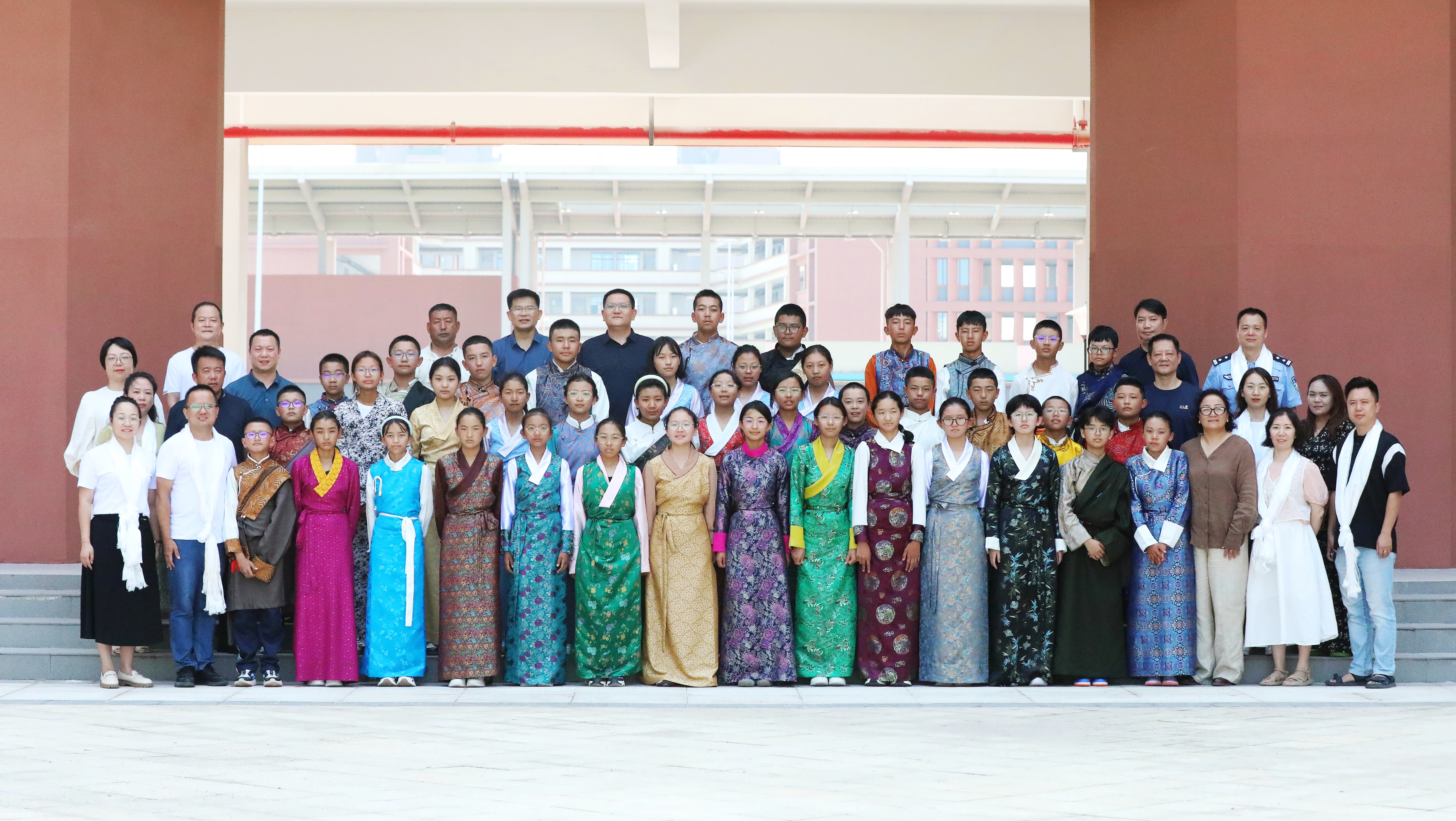 来自西藏扎囊县的初中生,穿上传统民族服装,在景炎中学开启全新的学习体验。 通讯员/谢霞 记者/戴凛 摄