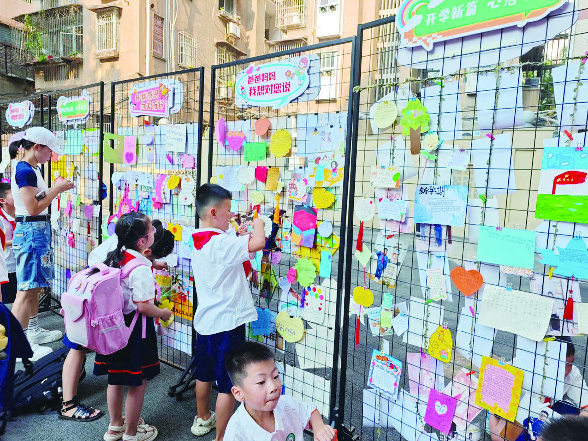 芦淞区栗树山小学,孩子动手设计制作感恩卡、心愿卡,把自己要对爸爸妈妈说的话粘贴在心愿墙上。 记者/戴凛 通讯员/罗湘娟 摄