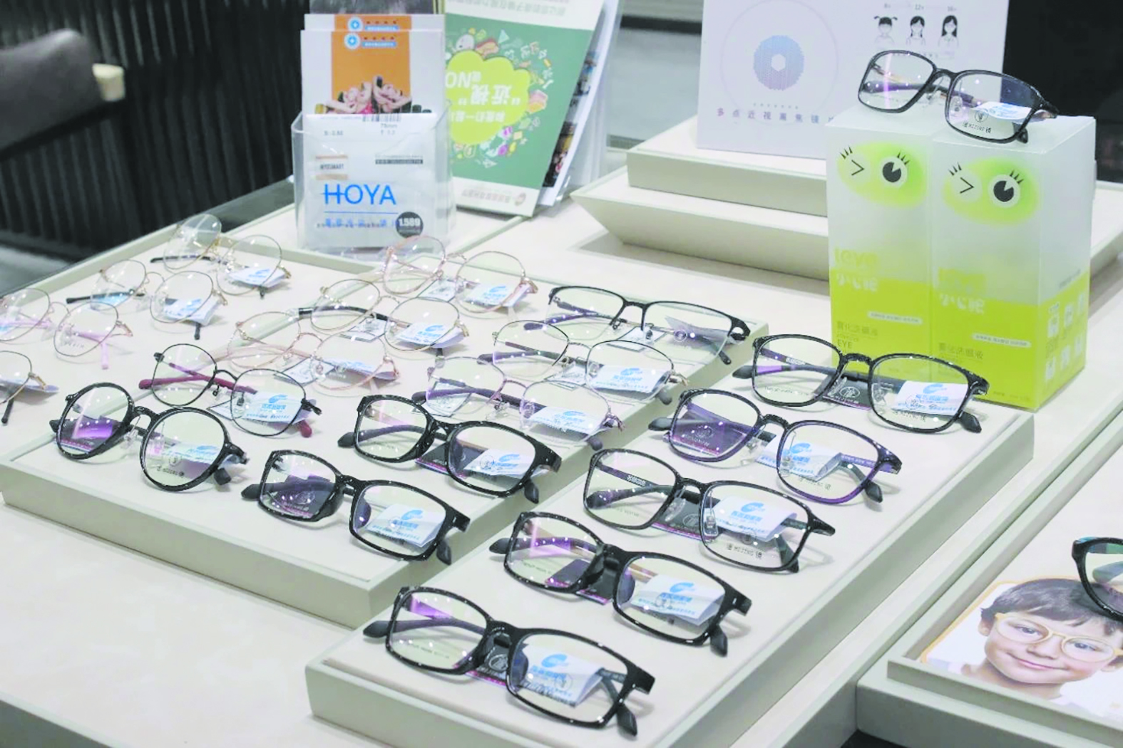 眼镜店的工作人员说,每年从开学前半个月开始,前来配眼镜的学生就会逐渐增多。记者看到,专为小学生设计的近视眼镜价格从几百元到上千元不等。店员解释,有些眼镜之所以价格较高,主要是因为采用了更轻巧的材质、更安全的镜架设计以及更先进的镜片技术。
