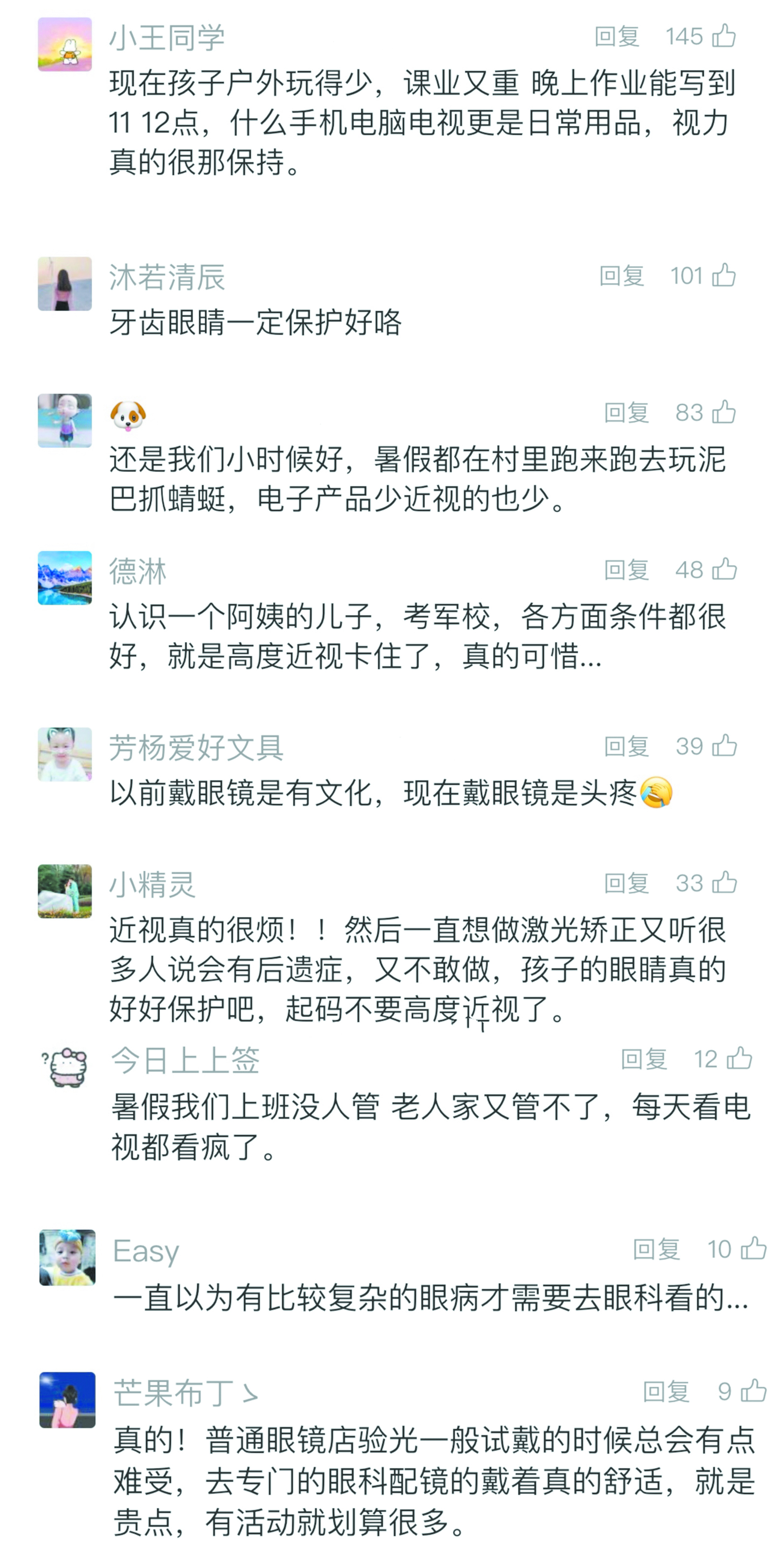 网友热议孩子视力问题