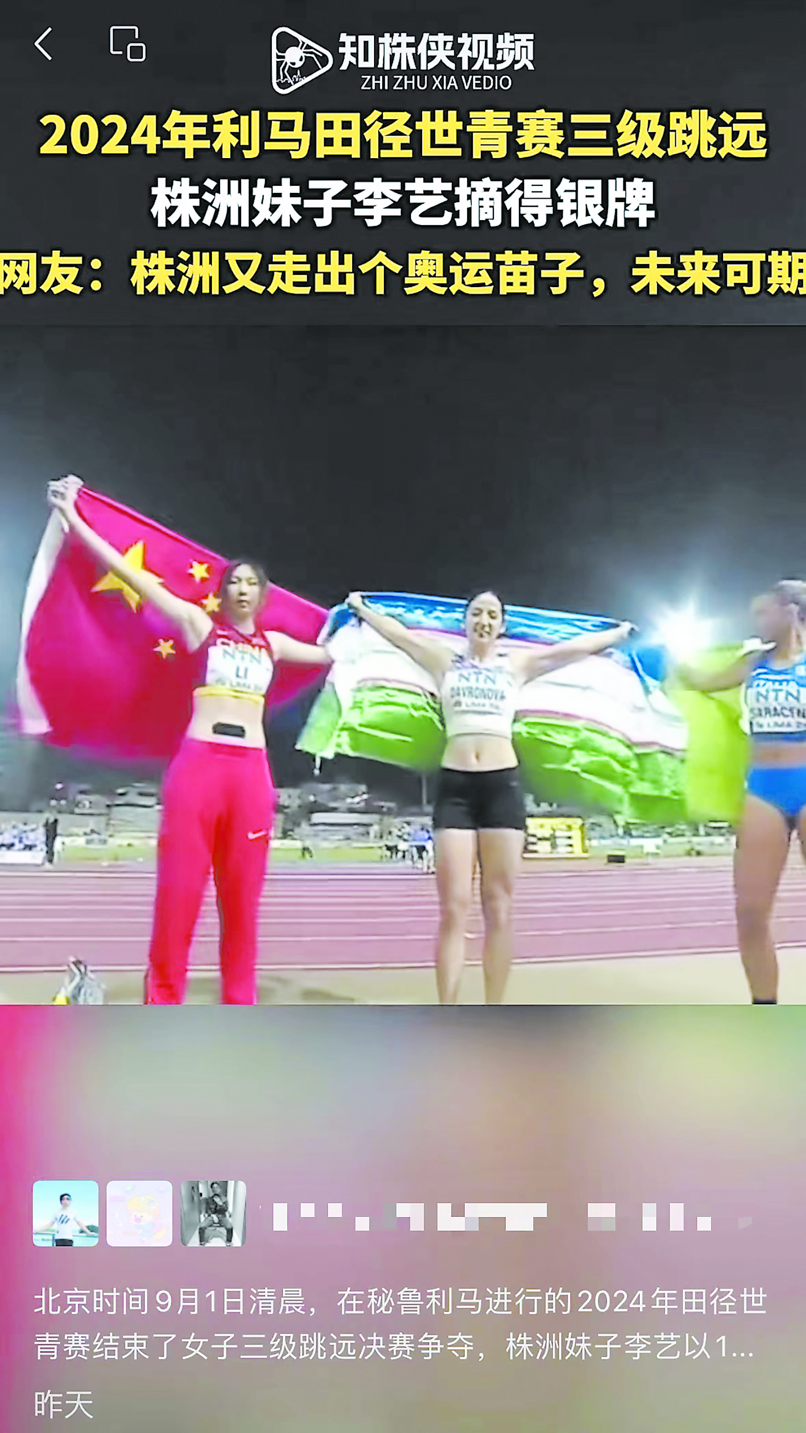 株洲妹子李艺田径世青赛摘银