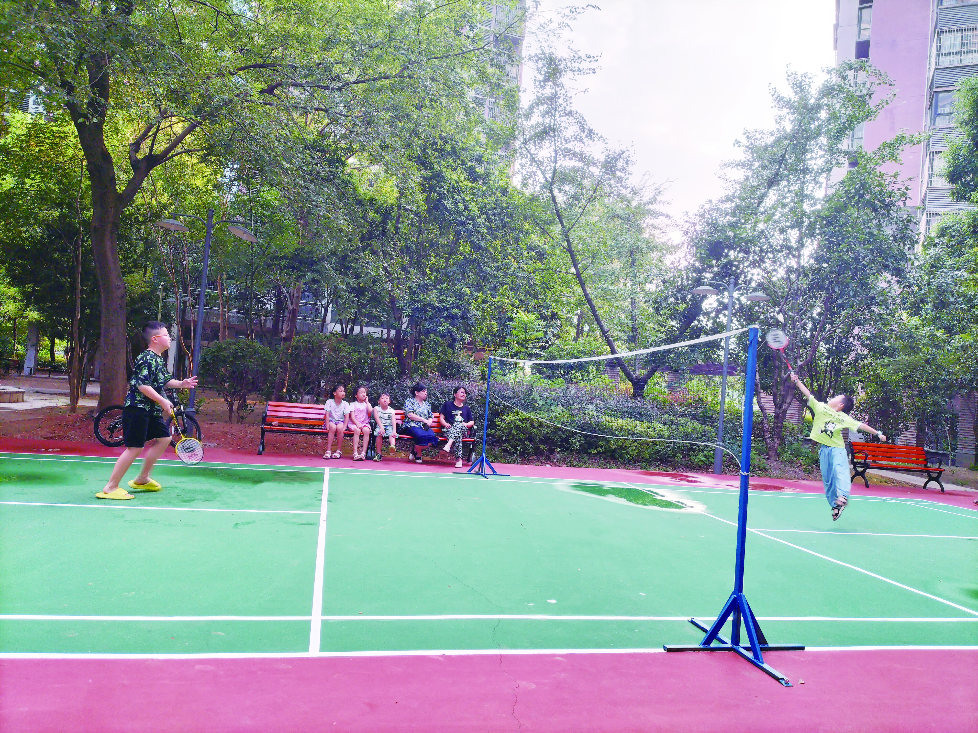 近日,该项目改造完成,场地涂上亮丽的彩色胶漆,焕然一新,这里也成为小区居民们的“新宠”。无论是清晨还是傍晚,都有居民在这里运动。