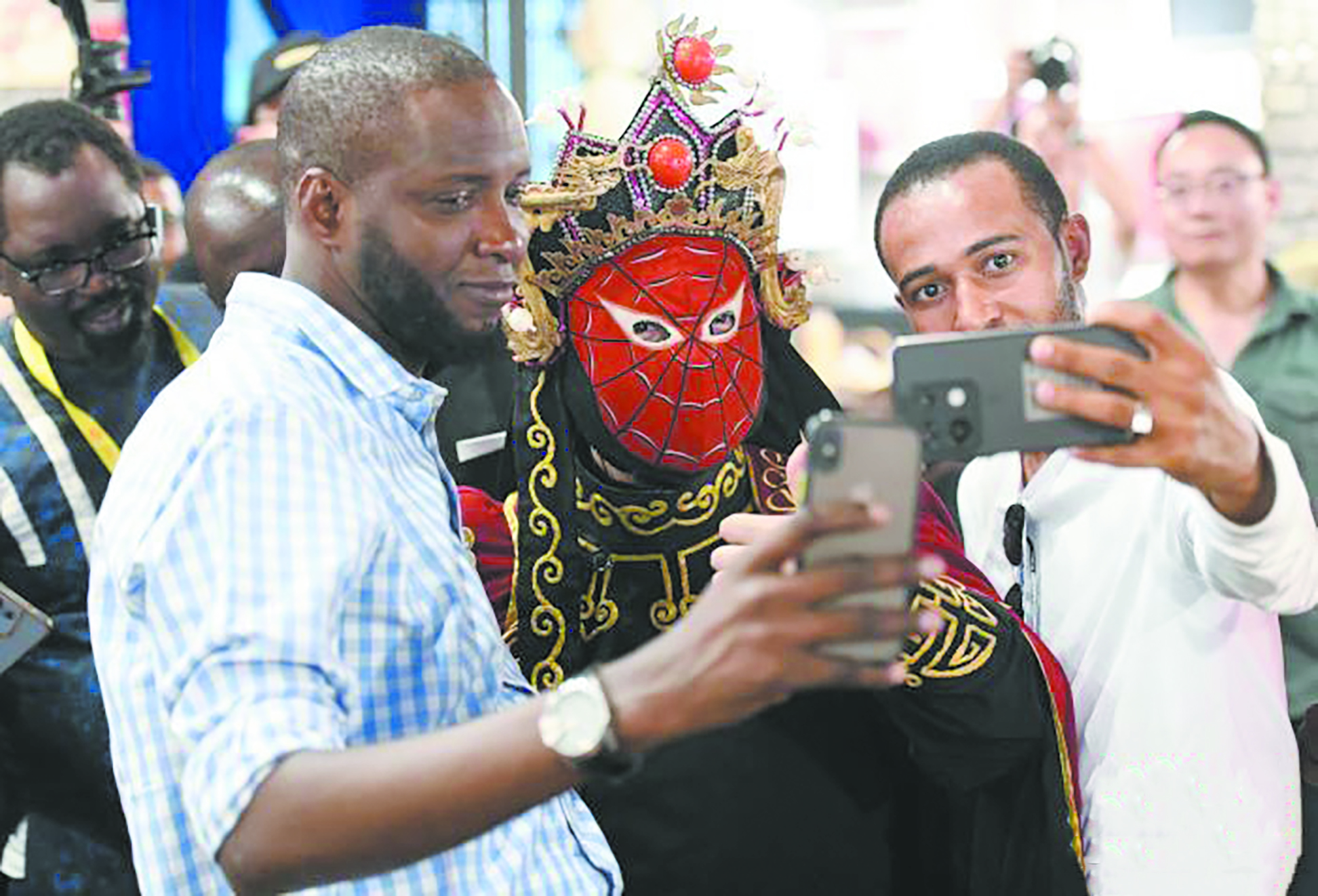 9月7日,非洲31个国家的35名记者在重庆参访,沉浸式感受中国传统文化魅力。当天,他们走进重庆市规划展览馆、山城巷等地,漫步了重庆老街巷、品味了山城茶文化、观赏了川剧变脸、打卡了李子坝单轨穿楼,实地领略了山城重庆的魔幻交通。图为非洲国家的记者在山城巷欣赏川剧变脸。