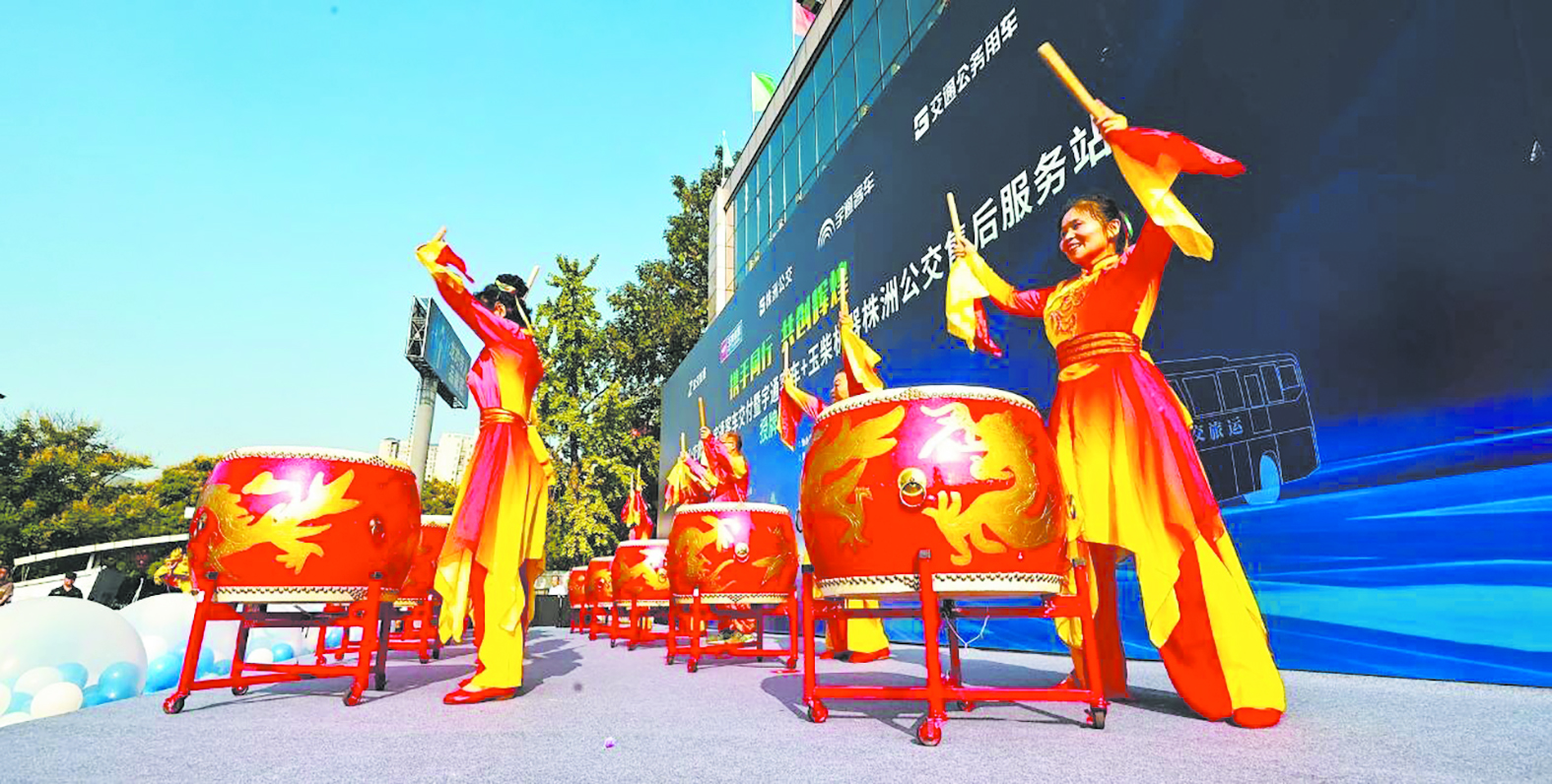 9月10日,株洲公交旅运&宇通客车交付暨宇通客车+玉柴机器株洲公交售后服务站授牌仪式,在株洲市公共交通有限责任公司举行。现场擂响威风锣鼓、舞起彩带飞龙的表演者来自株洲晚报志愿者联合会爱心艺术团,她们精彩的表演,赢得现场200余名嘉宾的满堂喝彩。