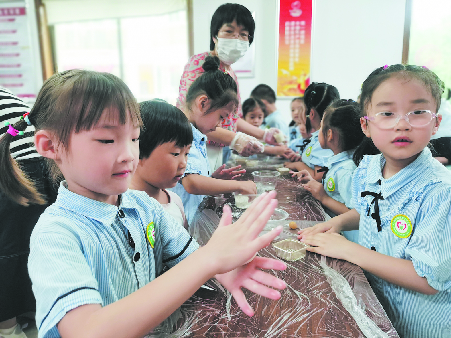【做月饼】 近日,天元区湘银社区开展“巧手做月饼·清廉迎中秋”主题活动。揉面、包馅、压模……在志愿者的指导下,小朋友参与制作出一个个月饼。 记者/何春林 通讯员/田元元 摄