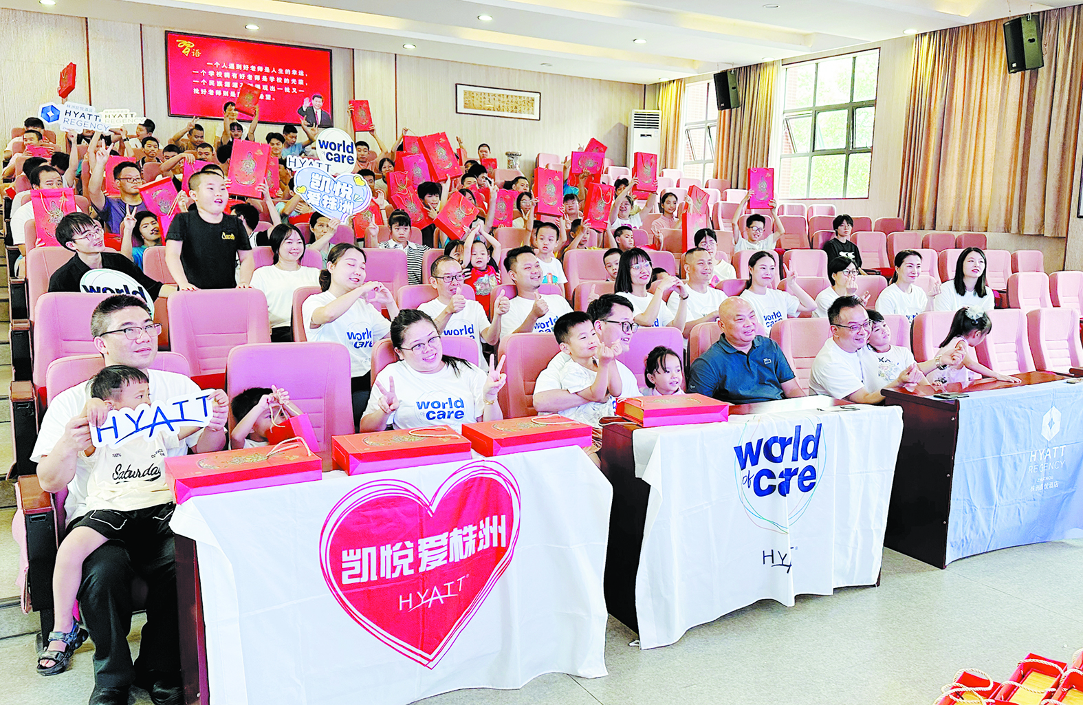 【心手相连】 9月14日,株洲凯悦酒店爱心人士前往株洲市特殊教育学校,与孩子们亲密互动,赠送月饼等小礼物,祝愿孩子们健康成长。记者/戴凛 摄