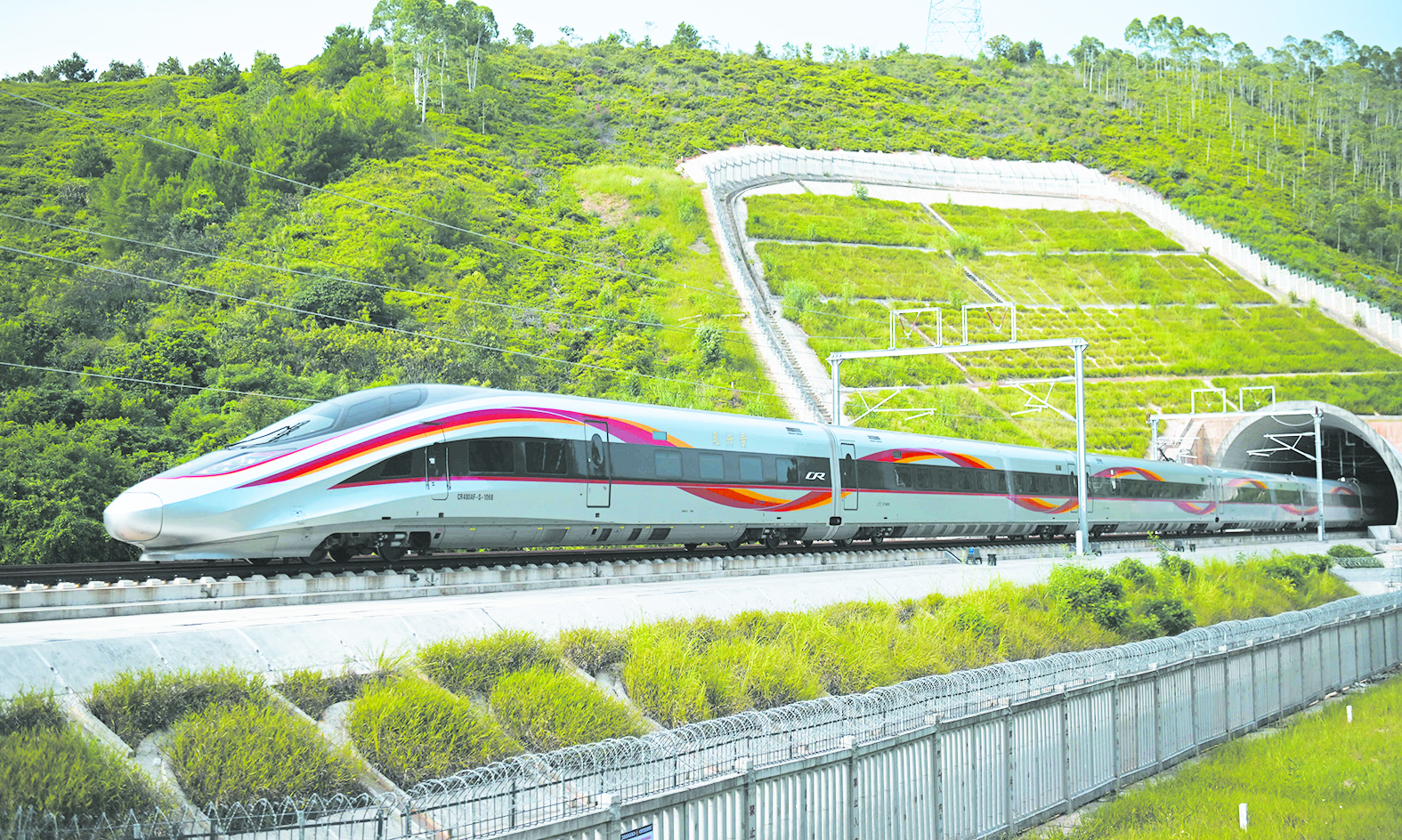 9月13日,复兴号试验列车驶出龙龙高铁梅龙段毛公寨隧道。