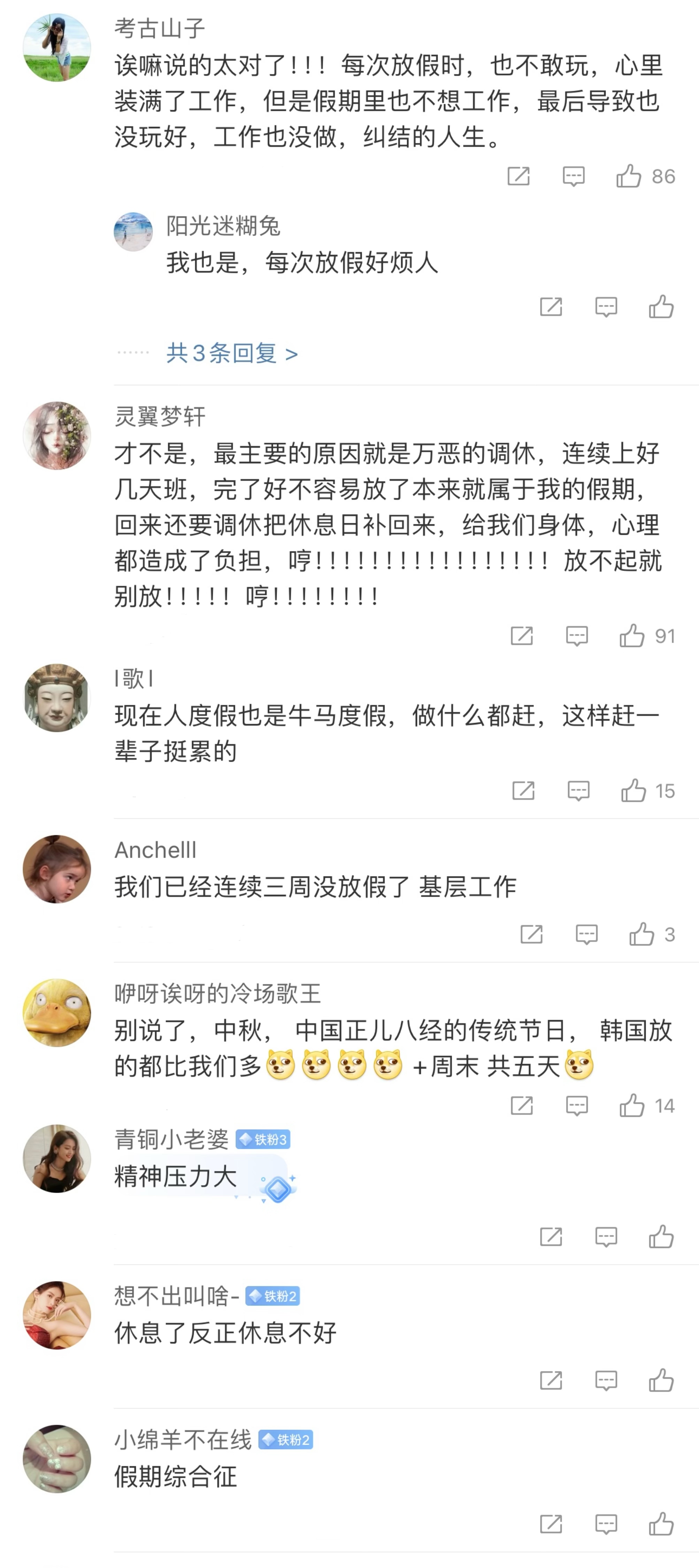 网友热议“虚假假期”。