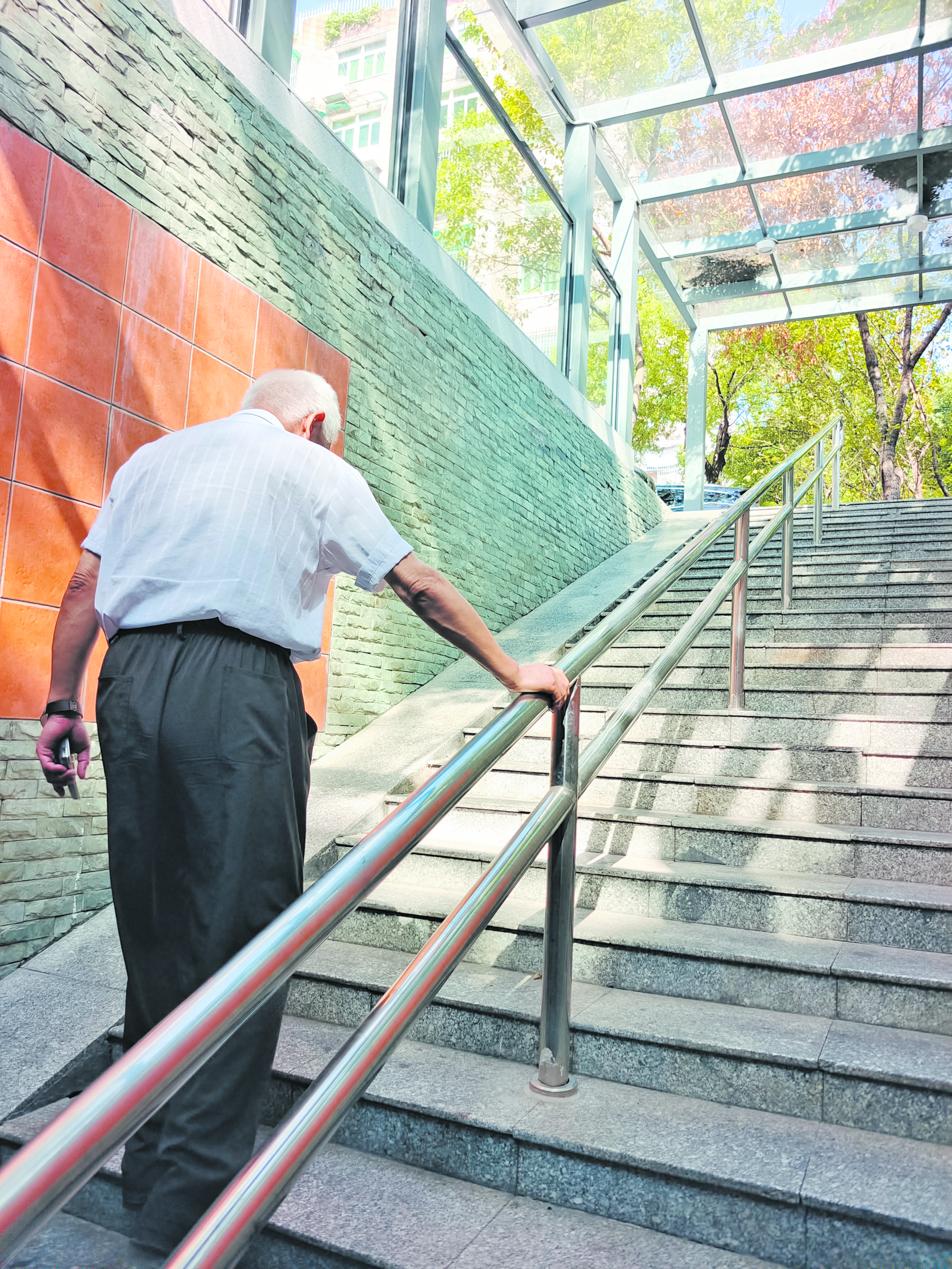 易大爷反映的出行难主要有两个方面的原因。一是地下通道扶手安装没到位。记者注意到,每一处地下通道都安装了扶手。其中,市人社局附近的地下通道,扶手安装在阶梯中间,老人可顺利抓握通行。另外3处通道的扶手均安装在墙壁上。行人进入地下通道后,必须在没有其他辅助设施的情况下,步行10余个阶梯才能顺利抓握扶手。