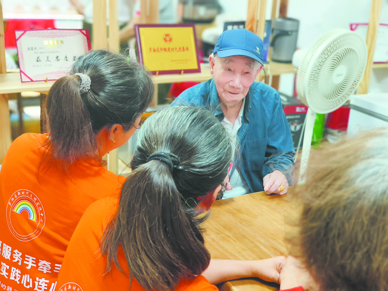 喜迎国庆。9月29日,97岁抗战老兵卢永发受邀到芦淞区贺家土街道“OK到家”工会驿站,给贺家土街道志愿者讲抗战历史。