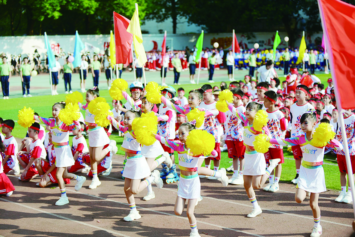 秋日阳光灿烂,我市中小学校体育节陆续启动。图为白鹤小学孩子们的活力运动操展示。 记者/戴凛 摄