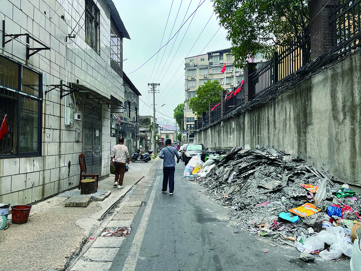 张家园“城中村”,建筑垃圾占道。 记者/刘平 摄