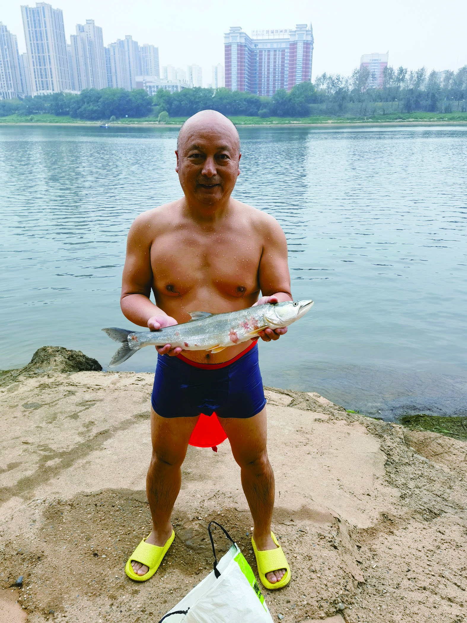 本报讯(株洲晚报融媒体记者/戴萍) 家住芦淞区的黄先生与余先生是一对游泳“搭子”。前天傍晚,两人在湘江里游泳时,各自徒手抓了一条鳡鱼,这把两人都乐坏了。