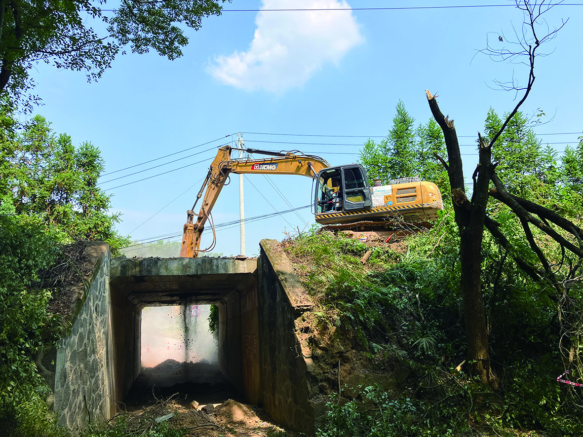 “主要是考虑涵洞两侧的墙体要保留,如果用炸药爆破,势必损坏墙体,留下垮塌隐患。”施工方负责人龙先生说,机械拆除虽然进度较慢,却是最优方案。