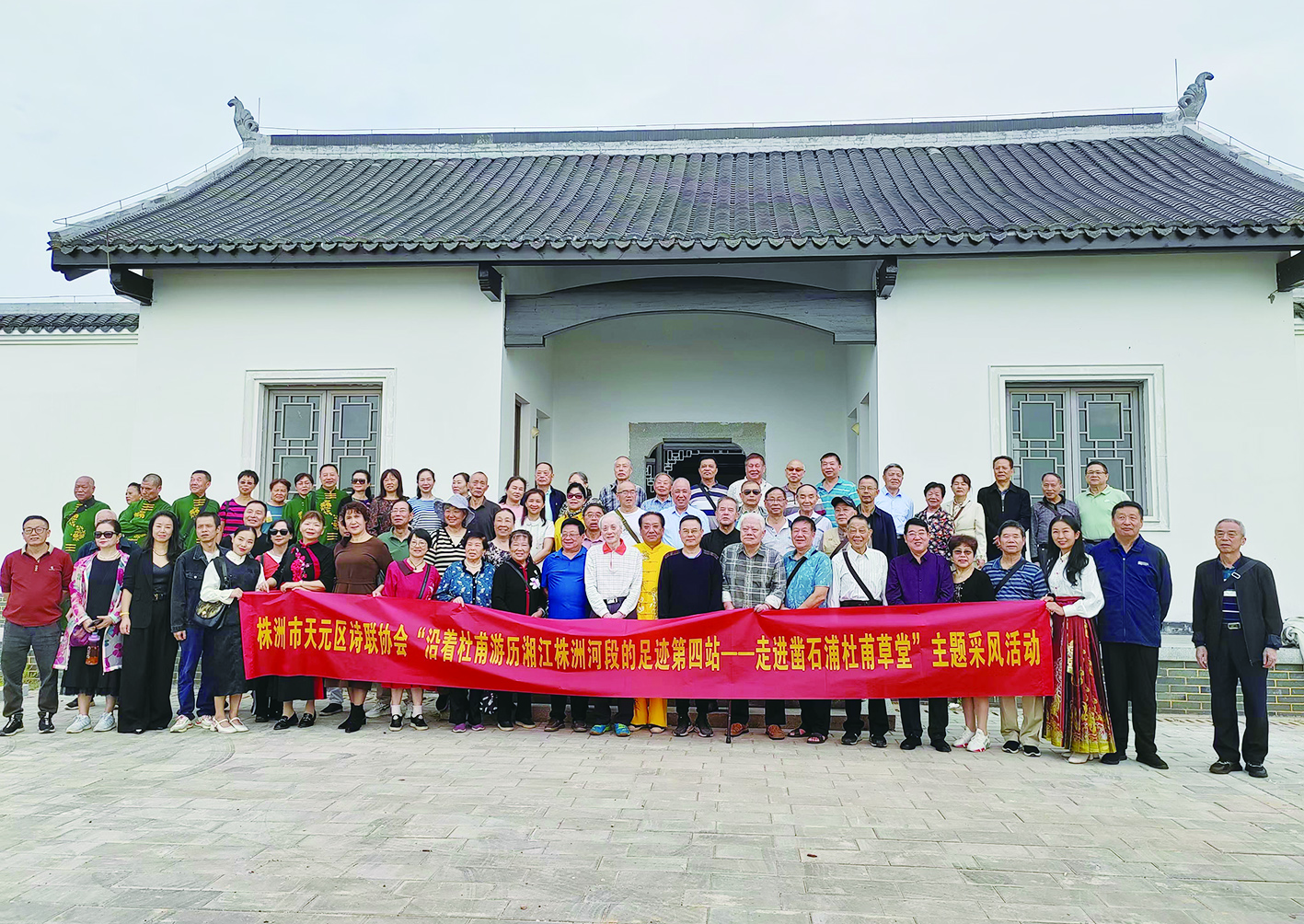 10月12日上午,秋高气爽。为纪念诗圣杜甫,天元区诗联协会联合湖湘文化志愿者协会、湖南工业大学诗联协会及凿石小学,在杜甫草堂共同举办了甲辰首届重阳诗会暨“沿着诗圣杜甫游历湘江株洲河段的足迹第四站——走进凿石浦杜甫草堂”主题采风活动。诗人们满怀热情,在城发文投公司讲解员的带领下,依次参观了杜甫草堂、庆霞寺、王氏学校等凿石浦杜甫草堂建筑群。