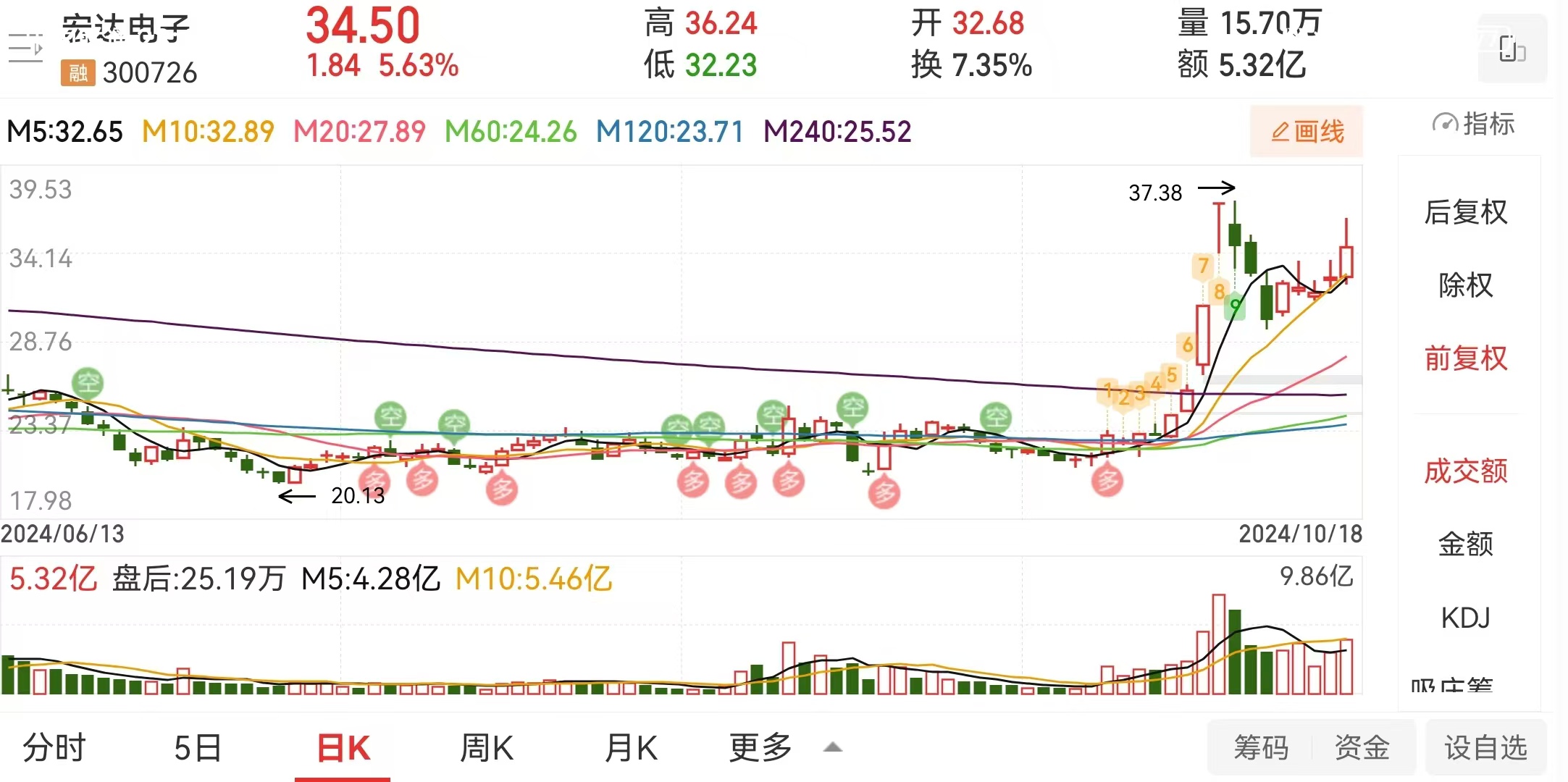 9月24日,A股变盘,市场热度渐起,株洲上市公司的投资者们显然都没准备好,连续两天都没有太多表现。但此后,株股热度持续攀升,资金持续涌入,其中,宏达电子在9月30日、10月8日连续收获两个20厘米涨停板。此后虽然跟随大盘调整,但截止10月18日收盘,股价已站稳30元价格区间,累计涨幅达到52.18%,领涨整个株股板块。