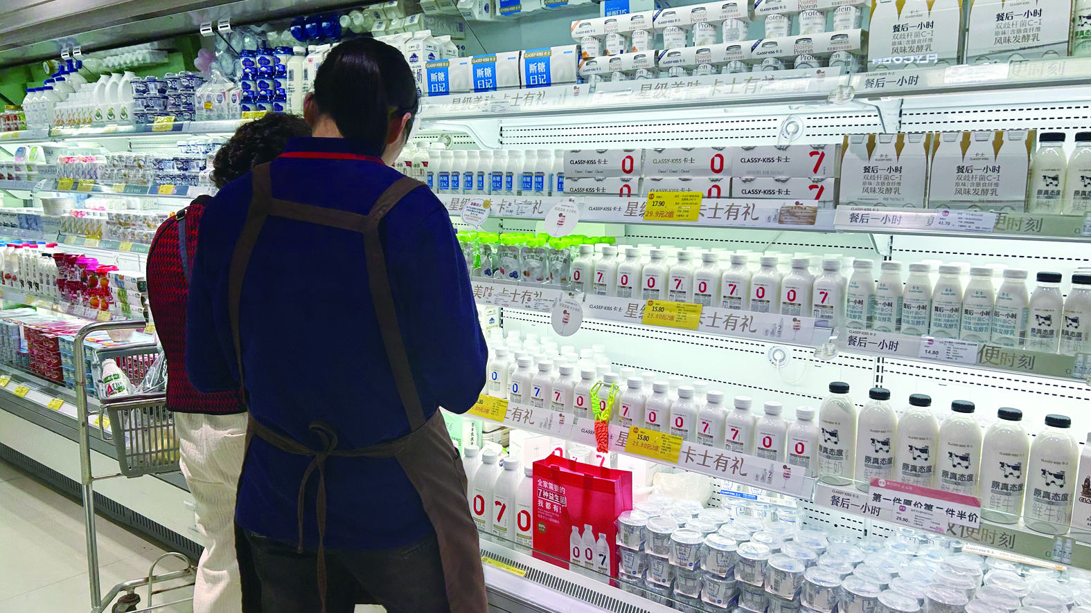 在超市里,零添加食品似乎涵盖了众多细分行业,除了调味品,还有饮料、零食等,一款饮料打出了“零糖、零脂肪、零卡路里”的推广标签而受到众多年轻消费者青睐,旁边奶制品专柜里,一款牛奶的宣传标签是“零蔗糖”,显示出与众不同。