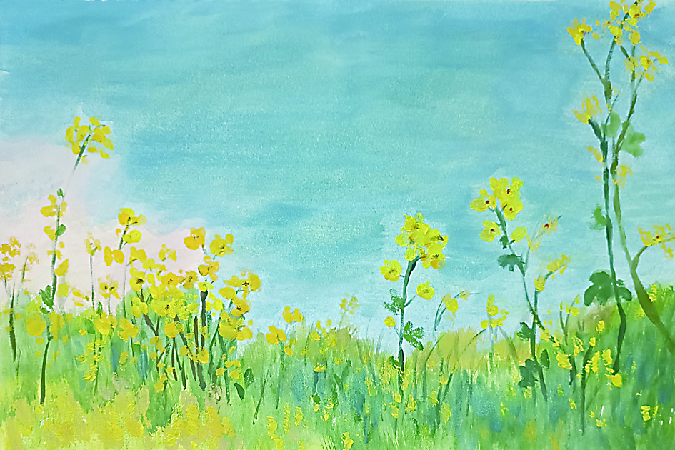 水粉画写生《江边春色》 (郭建华)