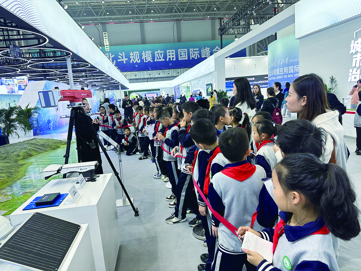 高科技装备让孩子们的好奇心如同被点燃的火花,跳跃不已。在E3馆的综合示范馆,孩子们了解了北斗在交通运输、现代农业等多个行业领域的规模应用成果。“原来科技就在我们日常生活中!”在专业讲解员的解说下,孩子们时而惊叹于科技的神奇,时而喜悦于知识的增长,时而若有所思,沉浸在科学的海洋中。